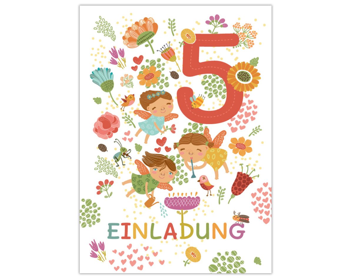 Einladungskarten Fee Einladungen zum 5. Kindergeburtstag Karten Mädchen Blumen