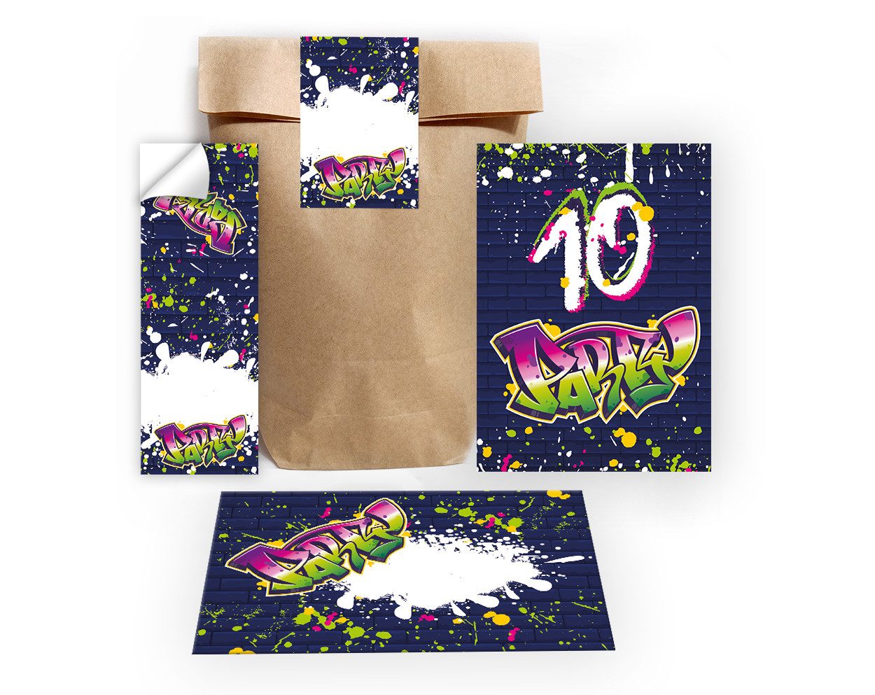 JUNAPACK Einladungskarten Graffiti zum 10. Geburtstag Einladungen Karte mit Umschlägen Mitgebsel, Mitgebsel Set mit Graffiti für Kinder zum zehnten Geburtstag