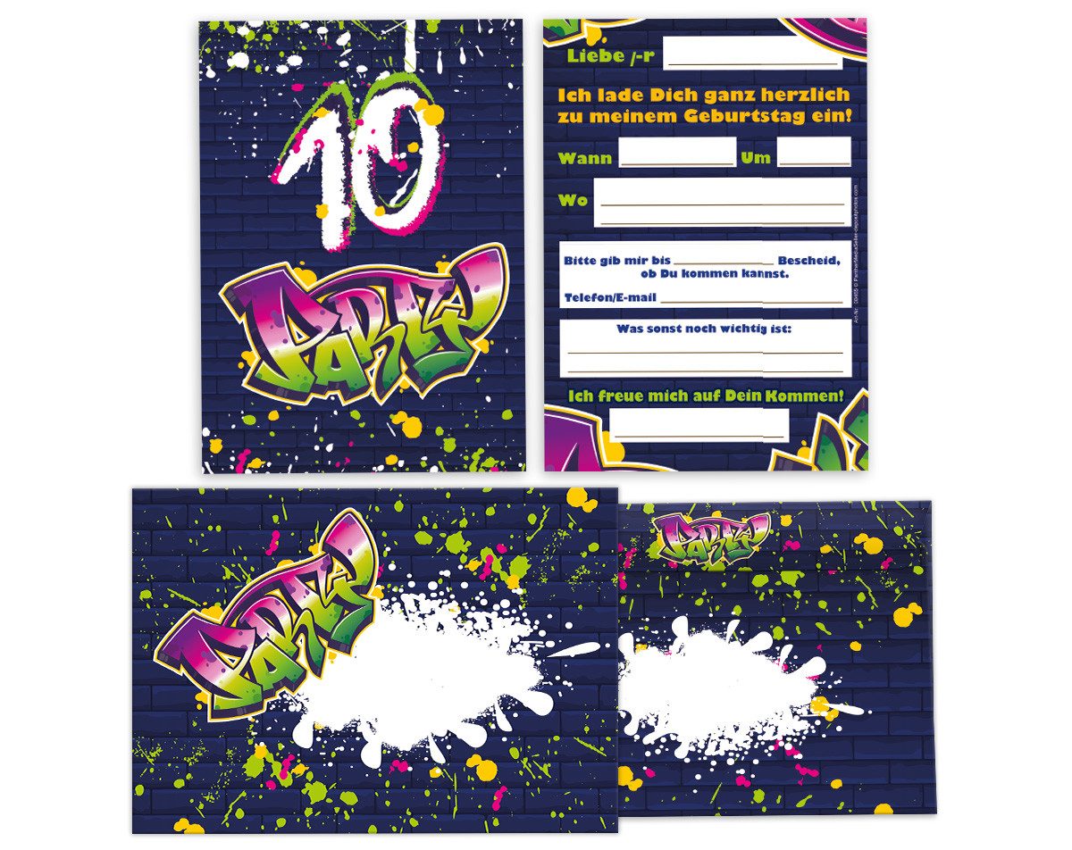 Inhalt: Das Set umfasst 12 coole Einladungskarten und die passenden 12 Umschläge – alles, was Sie für Ihre Einladung benötigen.