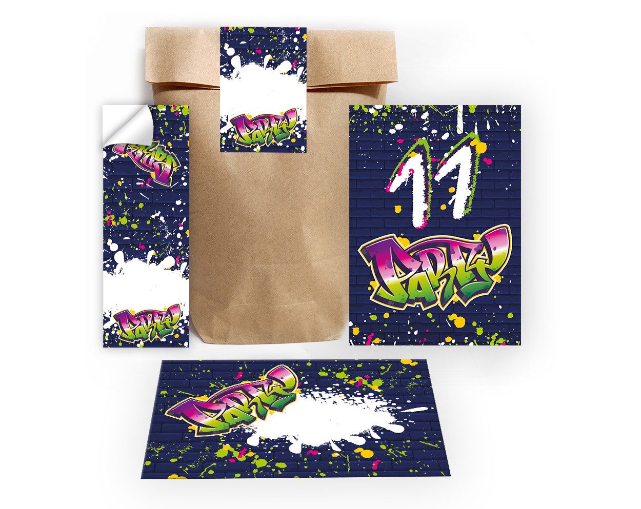 Einladungskarten Graffiti zum 11. Geburtstag Einladungen Karte mit Umschlägen Mitgebsel