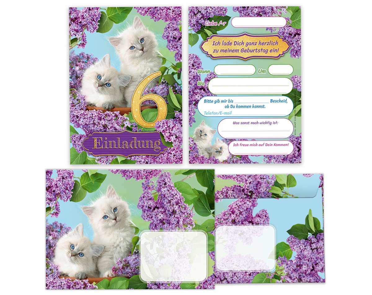 Einladungskarten Katzen zum 6. Kindergeburtstag Einladungen mit Umschlägen Karten