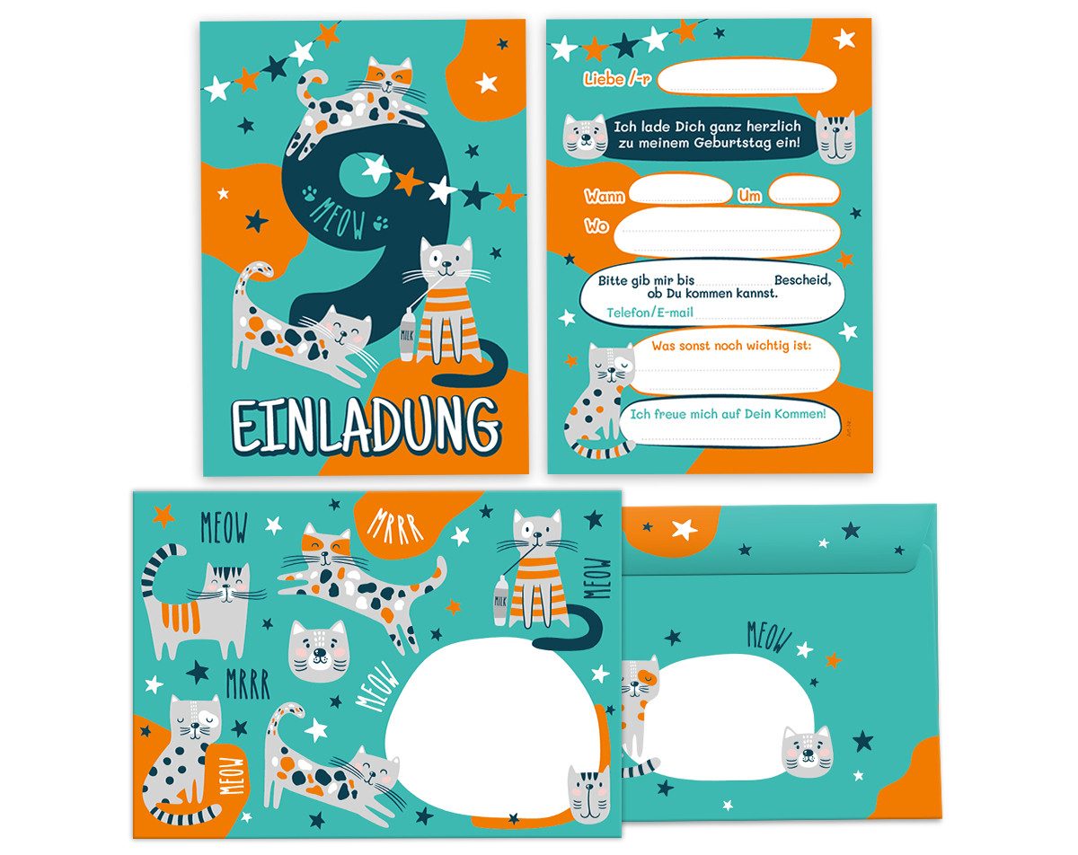 Einladungskarten Katzen zum 9. Kindergeburtstag Einladungen mit Umschlägen Karten