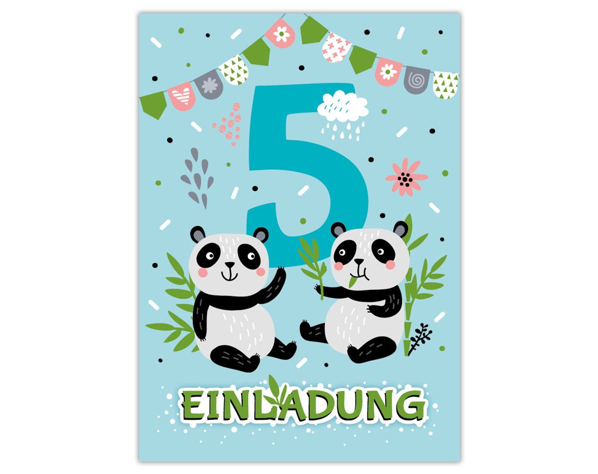 JUNAPACK Einladungskarten Panda Bär Einladungen zum 5. Kindergeburtstag Karten Mädchen, Einladungskarten mit einem Panda Bär zum fünften Geburtstag