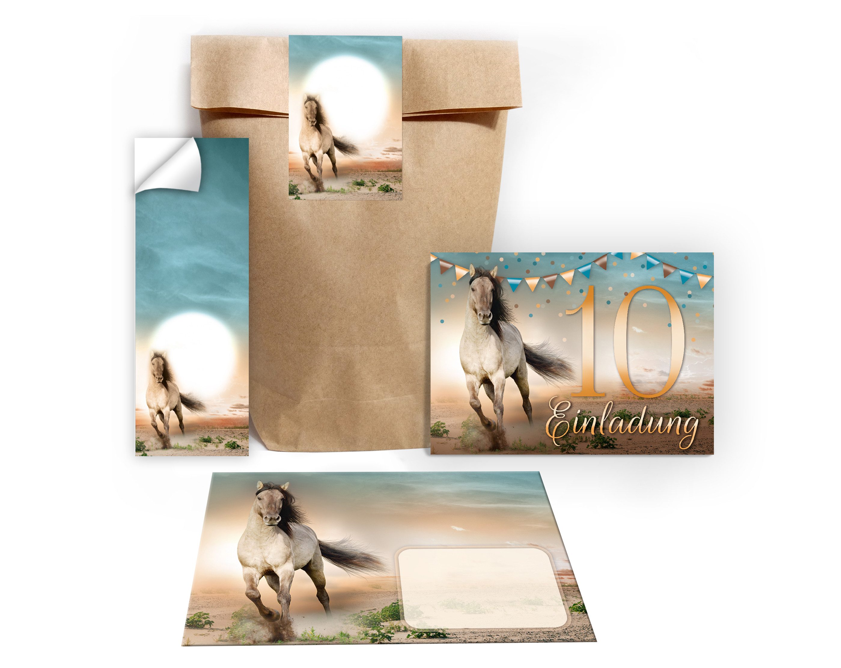 JUNAPACK Einladungskarten Pferd zum 10. Geburtstag Einladungen Karten mit Umschlägen Mitgebsel, Mitgebsel Set mit Pferd Motiv für Kinder zum zehnten Geburtstag