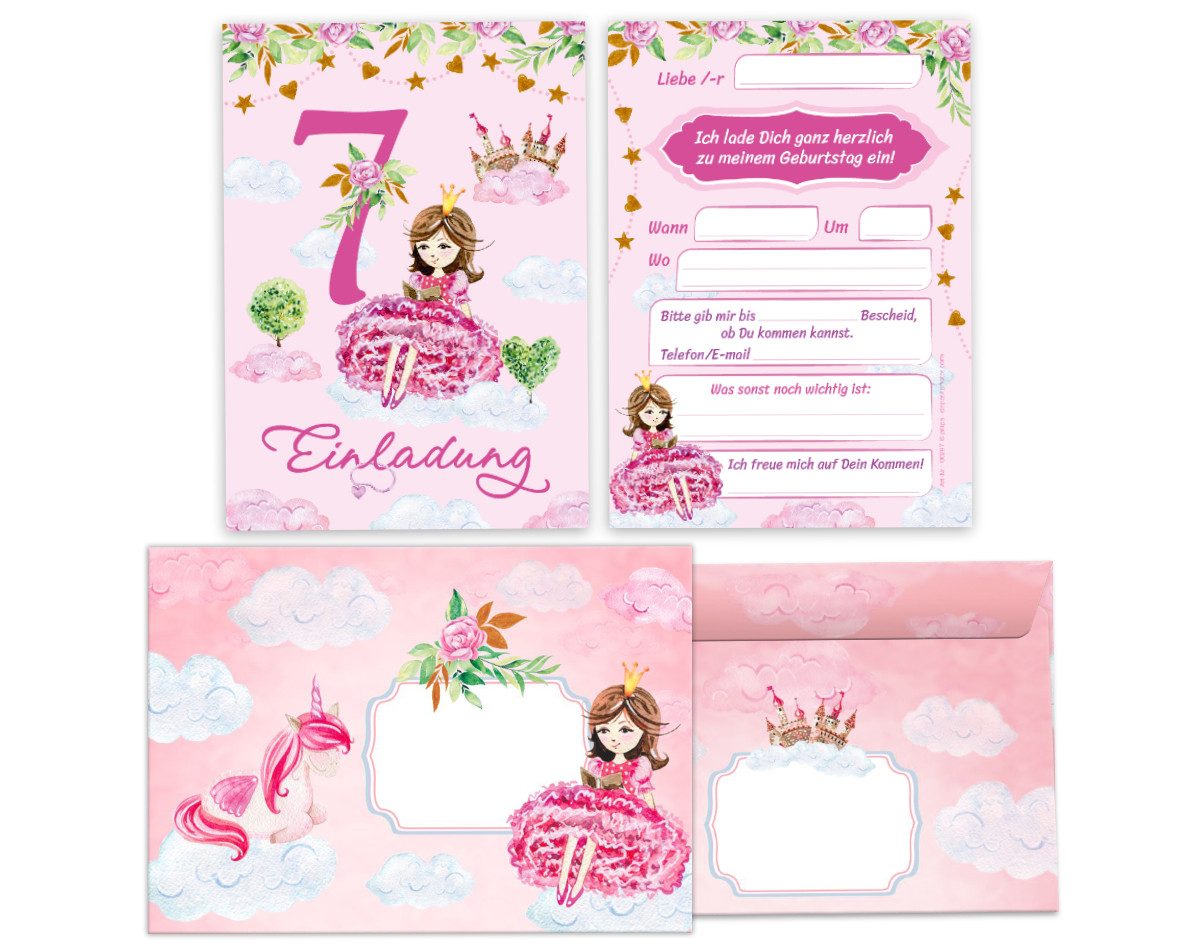 Einladungskarten Prinzessin zum 7. Kindergeburtstag Einladungen mit Umschlägen Karten