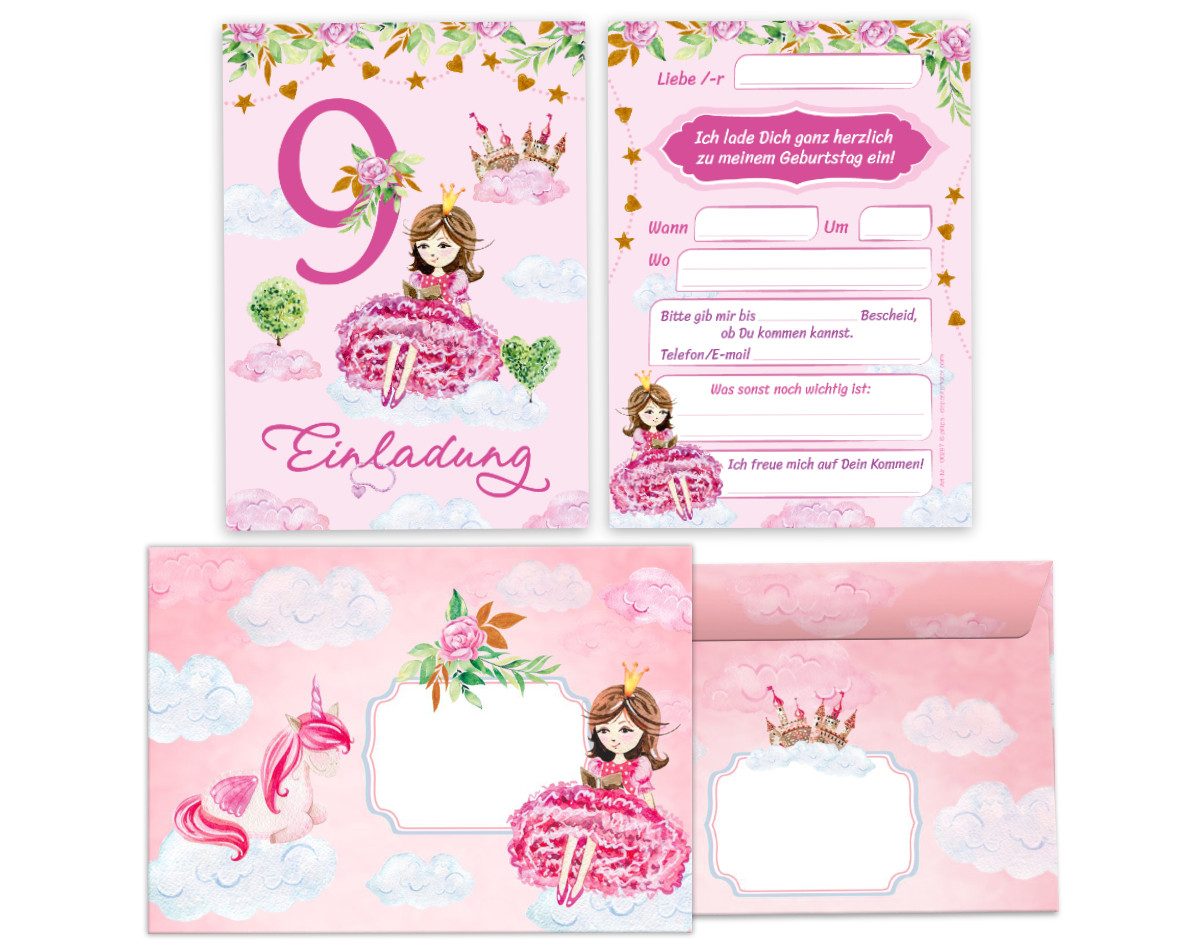 Einladungskarten Prinzessin zum 9. Kindergeburtstag Einladungen mit Umschlägen Karten