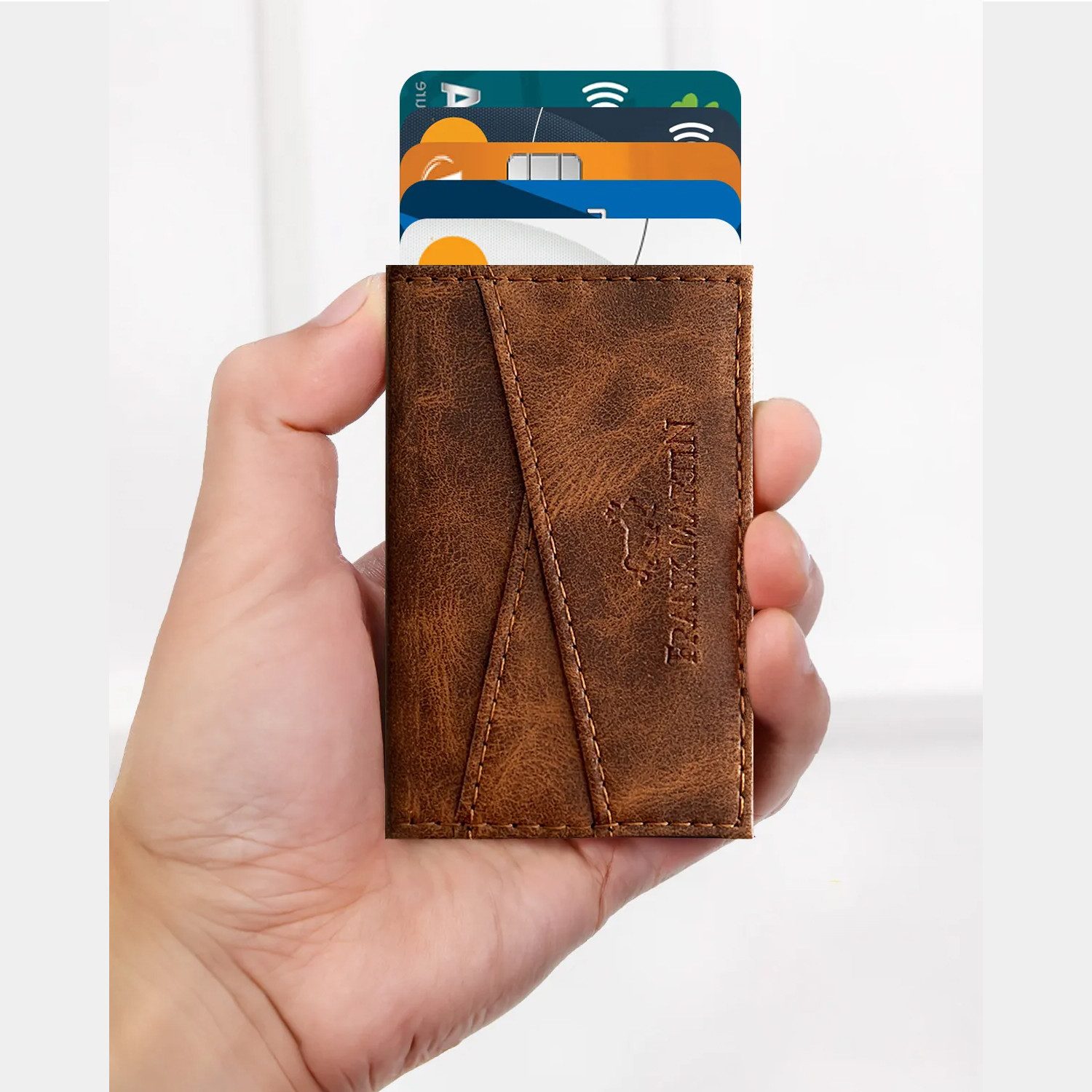 Ausstattung | Automatischer Auswurf-Mechanismus für 5–6 Karten, Zusätzliche Außenfächer (2 vorne, 2 hinten) für Karten oder Belege, Robuste Metall-Innenkonstruktion für Langlebigkeit, RFID-Schutz gegen unbefugtes Auslesen, Kompakte Maße: 9,6 × 6,5 cm, ideal für Hosentasche oder Tasche, Lieferung in stilvoller Geschenkbox |