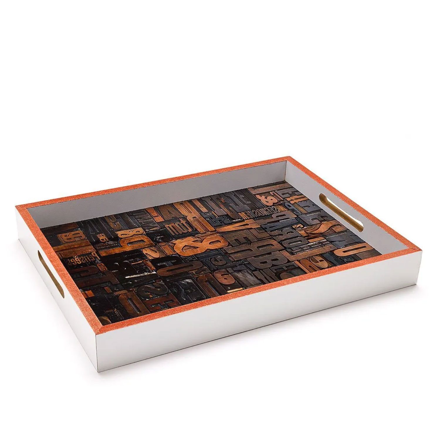 Dieses handgefertigte Serviertablett von Jungengel vereint Funktionalität mit einem außergewöhnlichen Design und ist ein stilvoller Blickfang für jeden Haushalt. Mit einer kompakten Размер von 29 x 21,5 x 3 cm eignet es sich perfekt für den täglichen Gebrauch – ob zum stilvollen Servieren von Kaffee und Tee, zum Anbieten von Snacks oder als dekoratives Wohnaccessoire auf dem Esstisch oder im Wohnzimmer. Das Tablett besteht aus hochwertigem Holz und ist mit einer Schutzschicht aus transparentem Kunststoffglas (Acryl) versehen. Die bedruckte Bodenfläche zeigt ein kunstvolles Typografie-Muster im Retro-Look – ideal für alle, die Vintage-Flair lieben. Dank der robusten Ausführung und der glatten Oberfläche ist das Tablett nicht nur langlebig, sondern auch leicht zu reinigen. Zwei seitliche Griffe ermöglichen einen sicheren und komfortablen Transport. Durch die Verwendung lebensmittelgeeigneter Materialien ist das Tablett unbedenklich im Kontakt mit Speisen und Getränken. Ob als Frühstückstablett, zum stilvollen Präsentieren bei Gästen oder als dekoratives Element im Küchen- oder Café-Bereich – dieses Tablett erfüllt viele Zwecke mit Charme und Qualität.