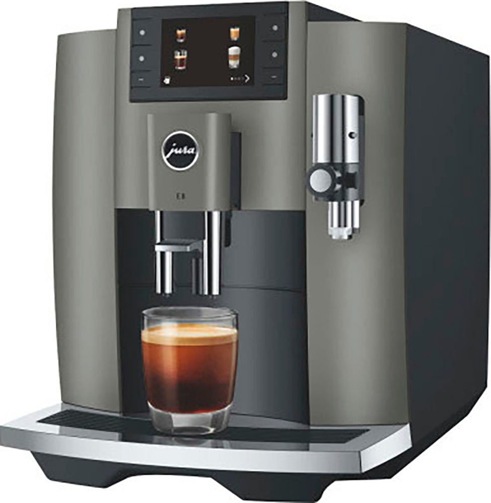 Впередe Vorteile | 17 Spezialitäten auf Knopfdruck (u. a. Americano, Lungo Barista, Cortado), Gemahlenes Kaffeepulver über die Speciality Selection, Zusatzfunktion »Extra Shot« für Cappuccino, Latte macchiato, Flat White Beliebt, begehrt, bewährt - Die jüngste Generation der E8 wird den hohen Ansprüchen, die an die Впередentwicklung des erfolgreichsten Vollautomaten Modells von JURA gestellt werden, in allen Belangen gerecht. Sie begeistert mit großartigen Kaffeeresultaten, besticht durch einfachste Bedienung und setzt Zeichen mit ihrem modernen, schlanken Design. Modernste Technik befähigt sie, 17 verschiedene Kaffeeklassiker und spezialitäten auf Knopfdruck in bester Kaffeebar-Qualität zuzubereiten. Mit dem Mahlwerk P.A.G.2 natürlich stets frisch gemahlen und dank hochentwickelter Brühtechnologie unter idealen Bedingungen extrahiert. Der Weg zum Genuss ist direkt und intuitiv, denn das 3,5" Tastendisplay mit großen Symbolen bietet höchsten Bedienkomfort. Ausgestattet mit vielen Vorzügen aus der Premiumklasse besitzt die E8 darüber hinaus einen hohen Werterhalt. Fortschrittliches Mahlwerk P.A.G.2: Sorgt für ein ideales Mahlgut, 12,2 % mehr Aroma, Ruheposition des P.A.G.2 vor und nach der Zubereitung schont das Mahlwerk über die gesamte Lebensdauer, Mahlgradveränderung pro Spezialität möglich, Arbeitet flüsterleise, Sieben Mahlgradstufen One-Touch-Milchsystem-Reinigung dank innovativem Fluidsystem, 5-Sterne-Handling: Restwasserschale mit nur einer Hand entnehmbar, JURA Cockpit mit Pflegestatusanzeige Sechs Bedientasten und neues, großes 3,5"-Farbdisplay, Klare Bilder und Grafiken für intuitivere Bedienung |