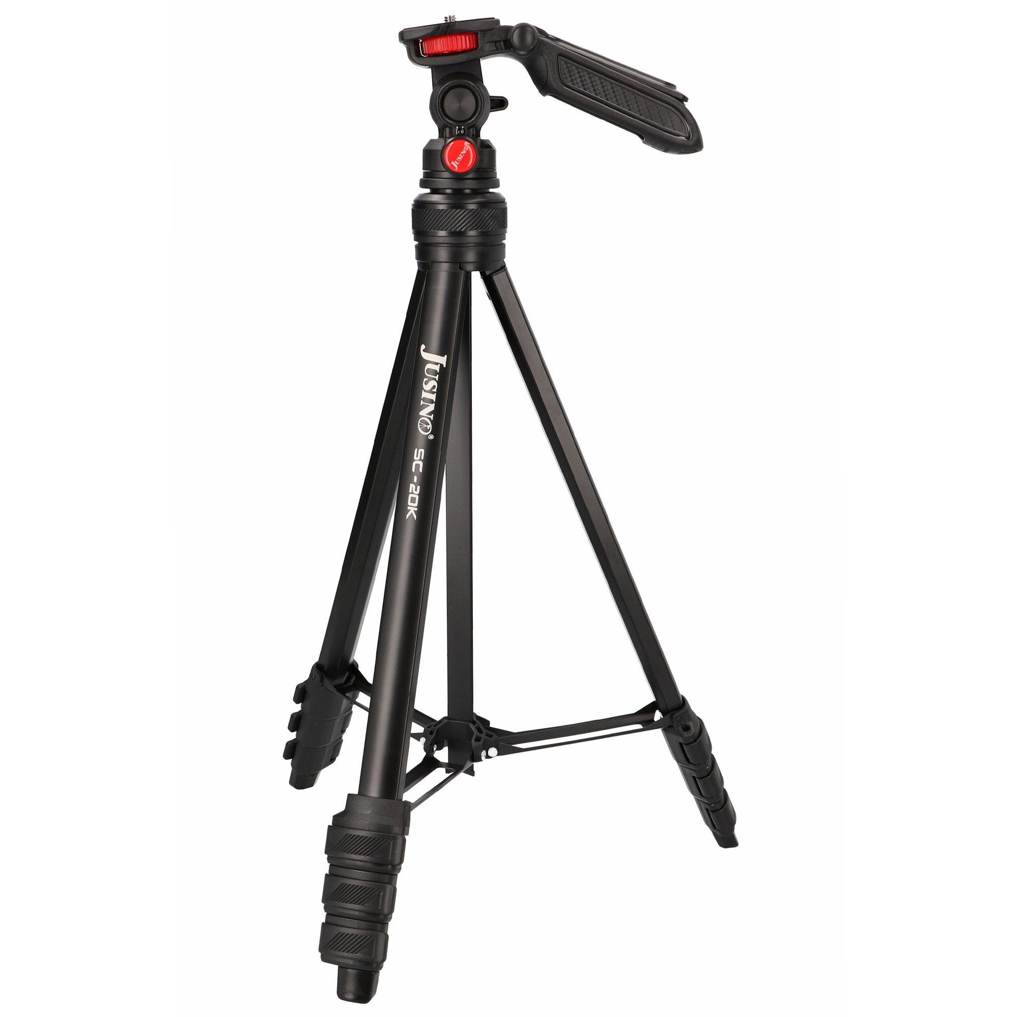 Das hochwertig verarbeitete Stativ hat eine maximale Arbeitshöhe von 139cm und kann bis 2,5kg belastet werden. Die Beine, die aus 4 Segmenten bestehen, sind mit praktischen Schnellspann-Clips versehen. Da sie sich in drei Anschlagwinkeln nach außen spreizen lassen, können auch sehr niedrige Höhen eingestellt werden. Mit der eingebauten Wasserwaage behält man zudem stets den Überblick über die optimale Ausrichtung.