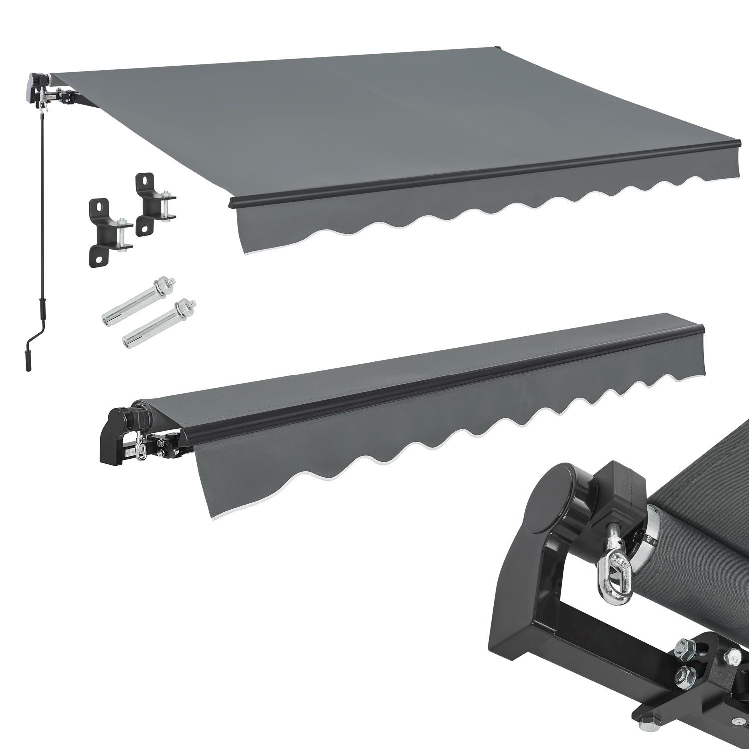 Mit der Gelenkarmmarkise 250 x 200 cm in Grau erhalten Sie einen Sonnenschutz für Terrasse oder Balkon. Die Markise spendet Schatten an sonnigen Tagen. Genießen Sie die schöne Zeit draußen mit der Familie und Freunden. Die Sonnenmarkise ist eine gute Alternative zum Terrassendach oder sperrigem Sonnenschirm, da Sie darunter mehr Platz für Gartenmöbel haben. Oder nutzen Sie die Markise vor Ihrem Fenster für mehr Schatten im Zimmer. Besonders praktisch: Bestimmen Sie selbst die Длина und Neigung der Markise.