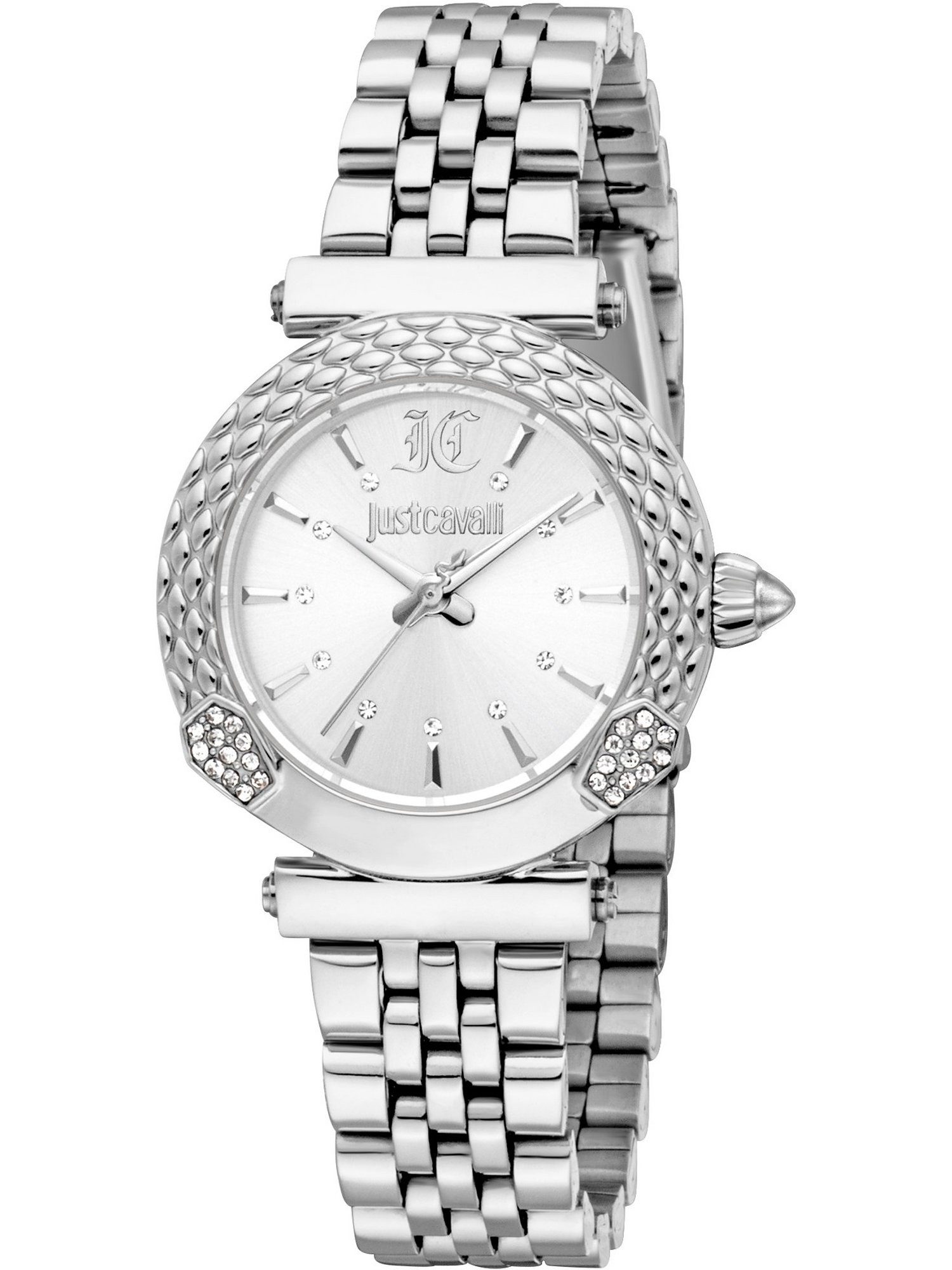Mit einer Just Cavalli Uhr trägst du pure Leidenschaft am Handgelenk. Diese Uhren sind wie geschaffen für alle, die auffallen wollen und keine Kompromisse bei Stil und Individualität eingehen. Zeige deine wilde Seite - mit Just Cavalli. Ausdruck von Stil und Persönlichkeit Diese elegante Uhr ist der perfekte Begleiter für jeden Anlass: Das Gehäuse ist aus Edelstahl und das Band aus schickem Leder. An das silberne Gehäuse der Just Cavalli Snake schließt sich ein Armband in Schwarz an, das silberne Ziffernblatt vollendet das Farb-Design. Für eine Extra-Dosis Glamour sorgen 35 glitzernde Kristalle. Die runde Form des Gehäuses mit einem Durchmesser von 30 Millimetern trägt sich dezent am Handgelenk. Durch das Quarzwerk ist eine hohe Präzision gewährleistet. Langlebige Schönheit Die Mineralglas-Abdeckung der Uhr ist klar und widerstandsfähig - genau das Richtige für den normalen, täglichen Gebrauch. Dieser Zeitmesser ist mit einer Wasserdichtigkeit von 5 Bar ausgestattet, was bedeutet, dass er nicht nur Spritzwasser standhält, sondern auch einem wohltuenden Bad. Eins steht fest: Wer seinem Look eine individuelle Note verleihen möchte, macht mit der stilvollen Just Cavalli Snake Damenuhr alles richtig. Worauf wartest du also noch?