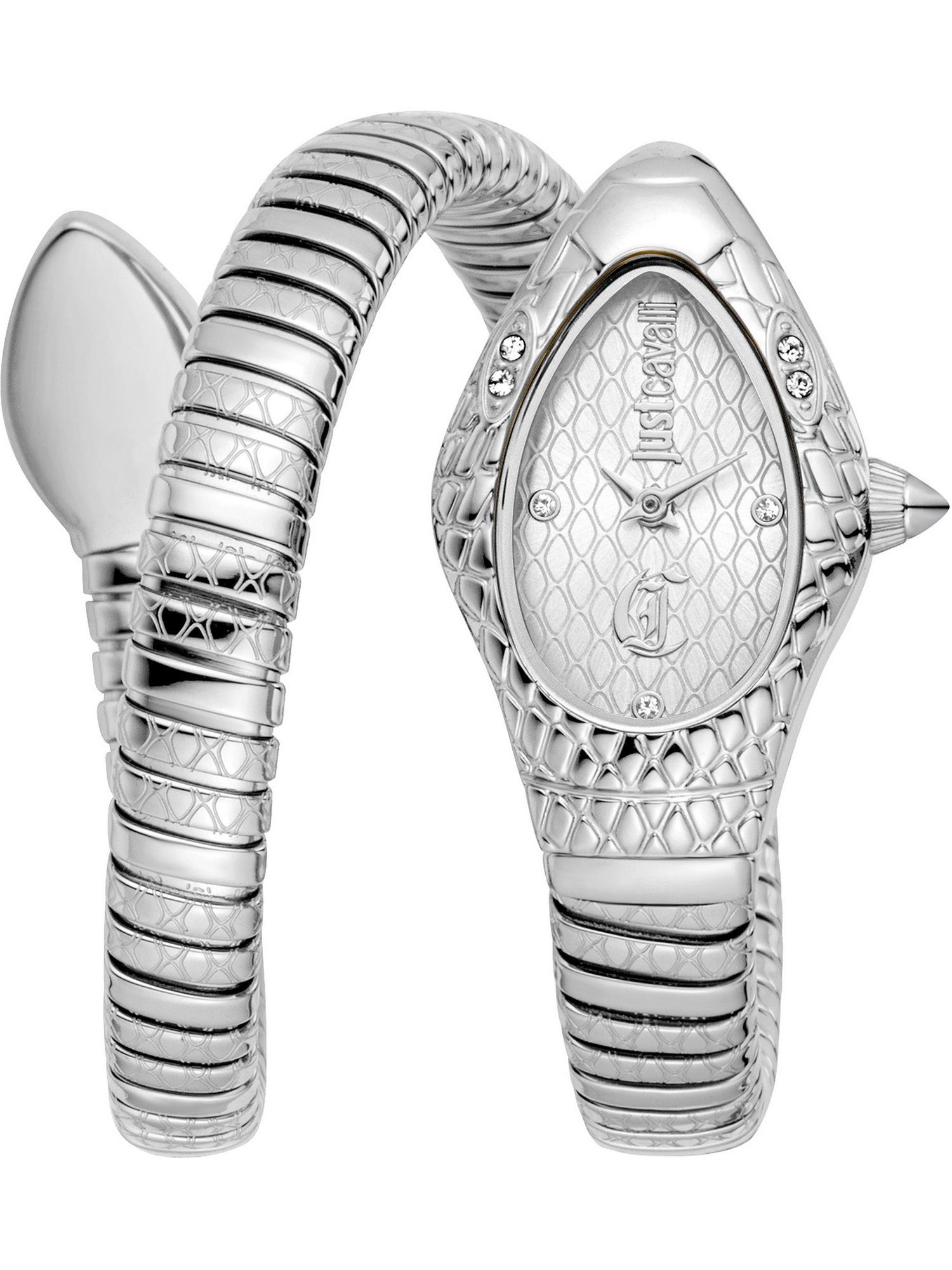 Wenn du eine Uhr trägst, die so besonders ist wie du, dann ist es Just Cavalli. Mit kühnen Designs und ikonischen Details setzt die Marke Statements - für die, die ihren Stil mit Selbstbewusstsein und Raffinesse zeigen. Zeitloser Chic mit eleganter Note Eine perfekte Kombination aus lässig und elegant - das ist diese Damenuhr. Sie wird besonders durch das Edelstahl-Gehäuse und das robuste, aber dennoch schicke Band aus Edelstahl geprägt. Die Farbgebung komplett in Silber lässt die Just Cavalli Signature Snake im angesagten All-in-One Look erstrahlen. Strahlendes Highlight sind die 7 Kristalle. Die ovale Form des Gehäuses unterstreicht die stilvolle Eleganz dieses Modells und sorgt für eine schmeichelhafte Passform am Handgelenk. Durch das Quarzwerk ist eine hohe Präzision gewährleistet. Geschmackvoller Begleiter für deinen Alltag Ein Mineralglas bietet eine klare Sicht auf das Ziffernblatt und guten Schutz gegen alle Einflüsse, die bei normalem Gebrauch entstehen. Mit einer Wasserdichte von bis zu 3 Bar ist dieser Zeitmesser spritzwassergeschützt - Regen und Händewaschen machen ihm nichts aus. Kurzum: Die Just Cavalli Signature Snake Damenuhr ist besonders chic und präzise gefertigt - die perfekte Wahl für alle, die ein zuverlässiges Fashion-Statement fürs Handgelenk suchen.
