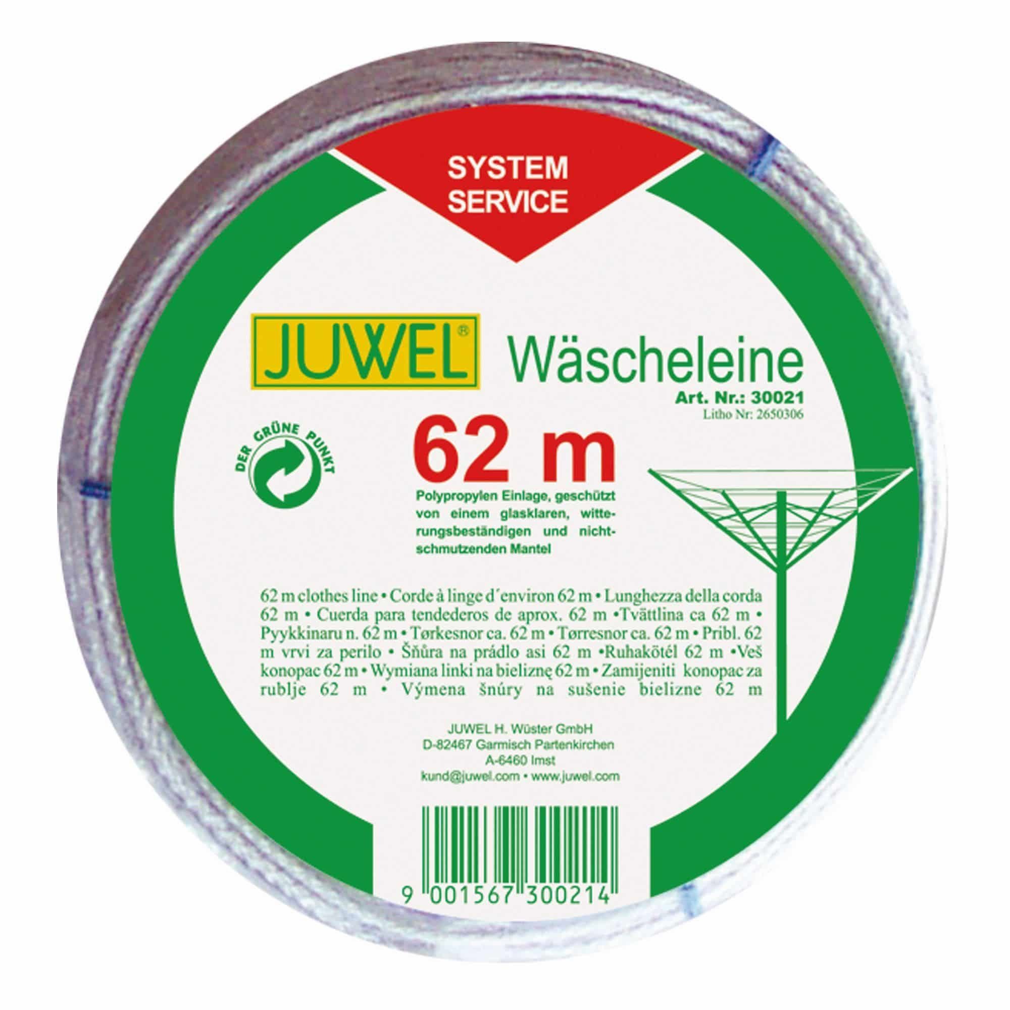 JUWEL WÄSCHELEINE 62 m; Passend für alle JUWEL Wäschespinnen; ca. 62 Meter; weiß ummantelt Ausführung: Wäscheleine 62 m Herstellerartikelnummer: 30021 Lieferumfang: 1 x JUWEL Wäscheleine 62 m