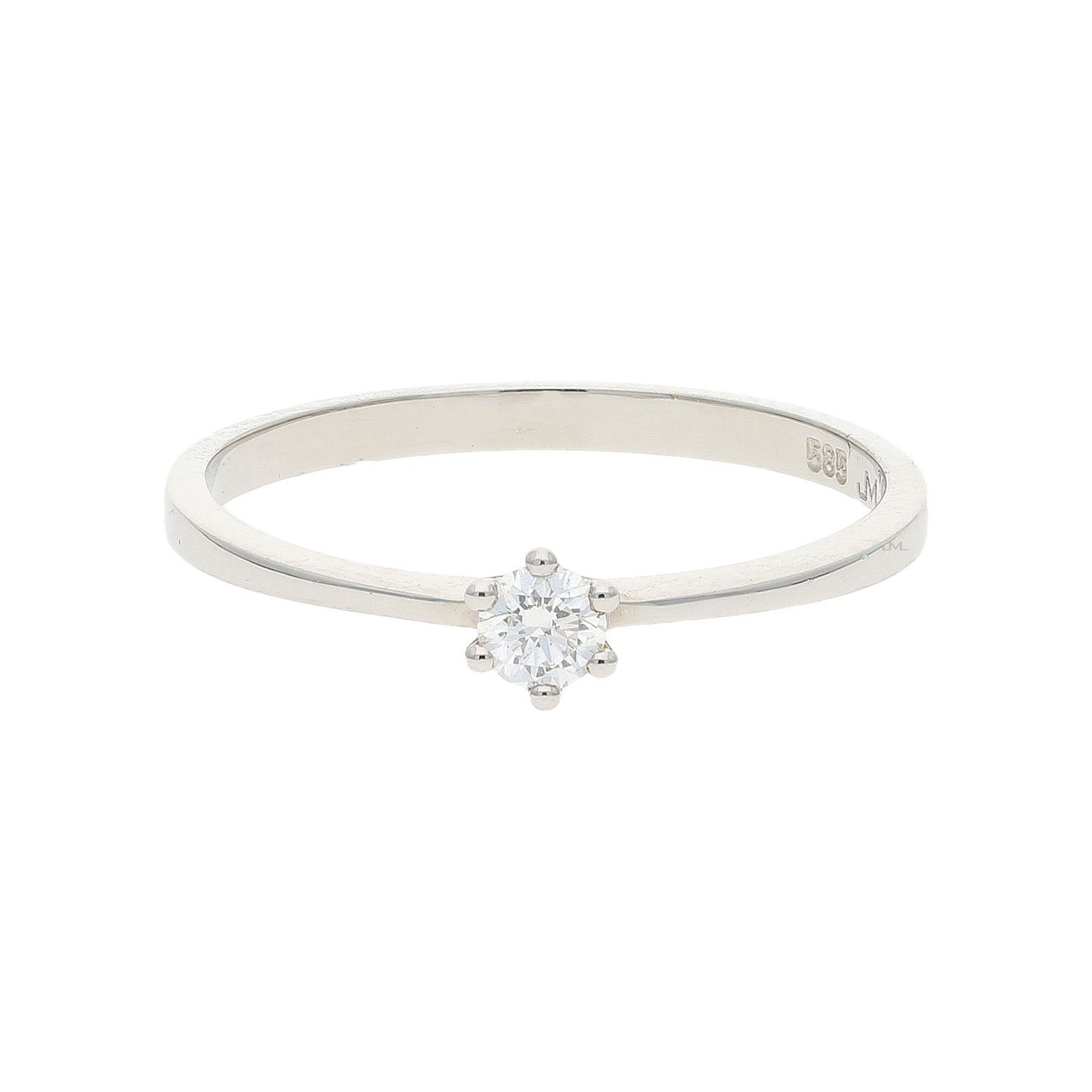 Dieser einzigartige JuwelmaLux Damenring ist aus 585er rhodiniertem Weißgold gefertigt und mit einem strahlenden Diamanten im Brillantschliff bestückt. Der Ring lässt sich nicht nur zu besonderen Anlässen gut kombinieren, sondern auch im Alltag und eignet sich daher perfekt als Verlobungsring.