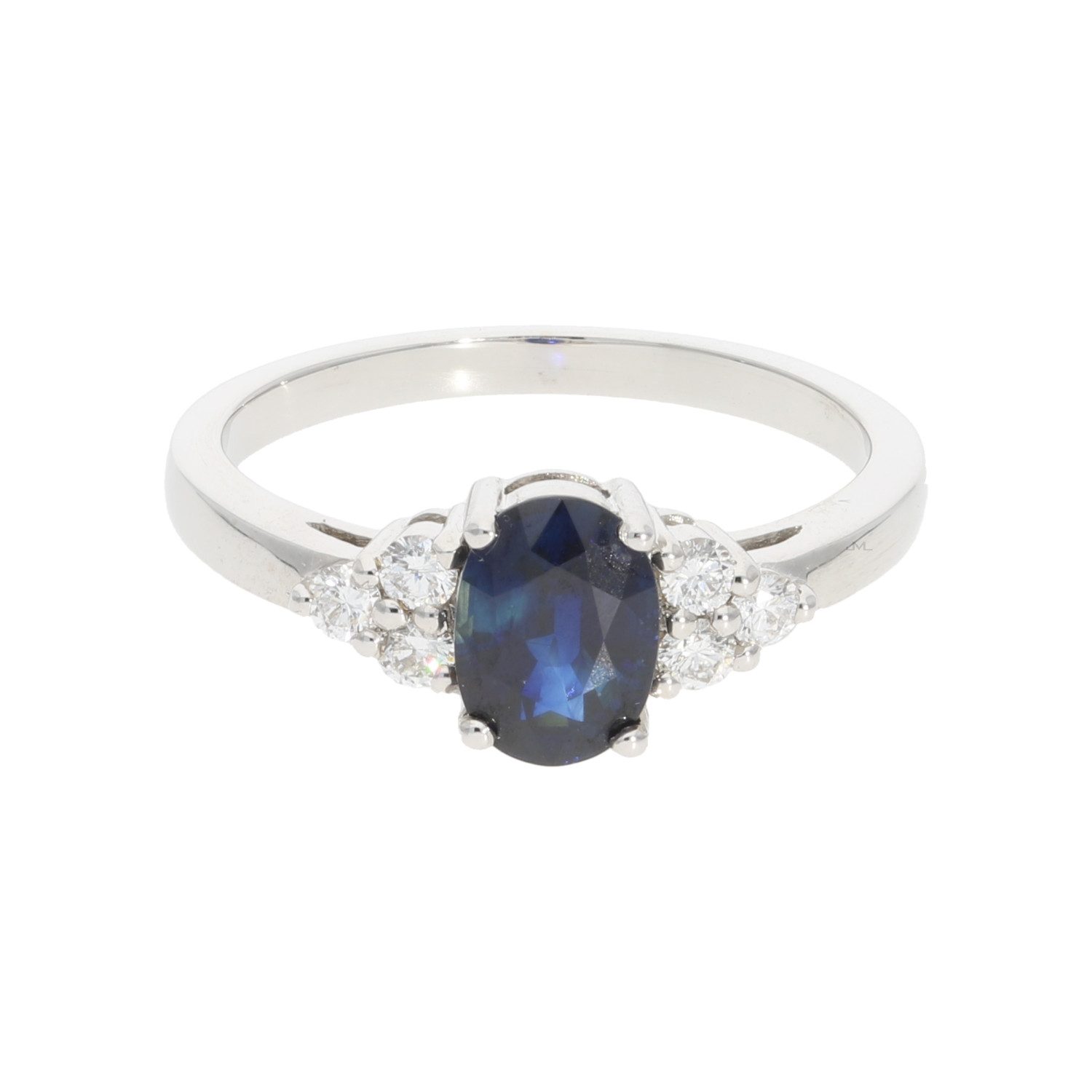 Eleganter JuwelmaLux Damenring in Weißgold 585er 14 Karat. Der Ring ist mit einem ovalen Saphir und Diamanten in Brillantschliff bestückt, welche von Hand gefasst und nicht verklebt sind. Dadurch ist ein fester Halt auch bei hoher Luftfeuchtigkeit, z.B. im Schwimmbad oder in der Sauna gewährleistet. Ein eleganter Ring mit Saphir und Brillanten, passend für alle festlichen Anlässe.
