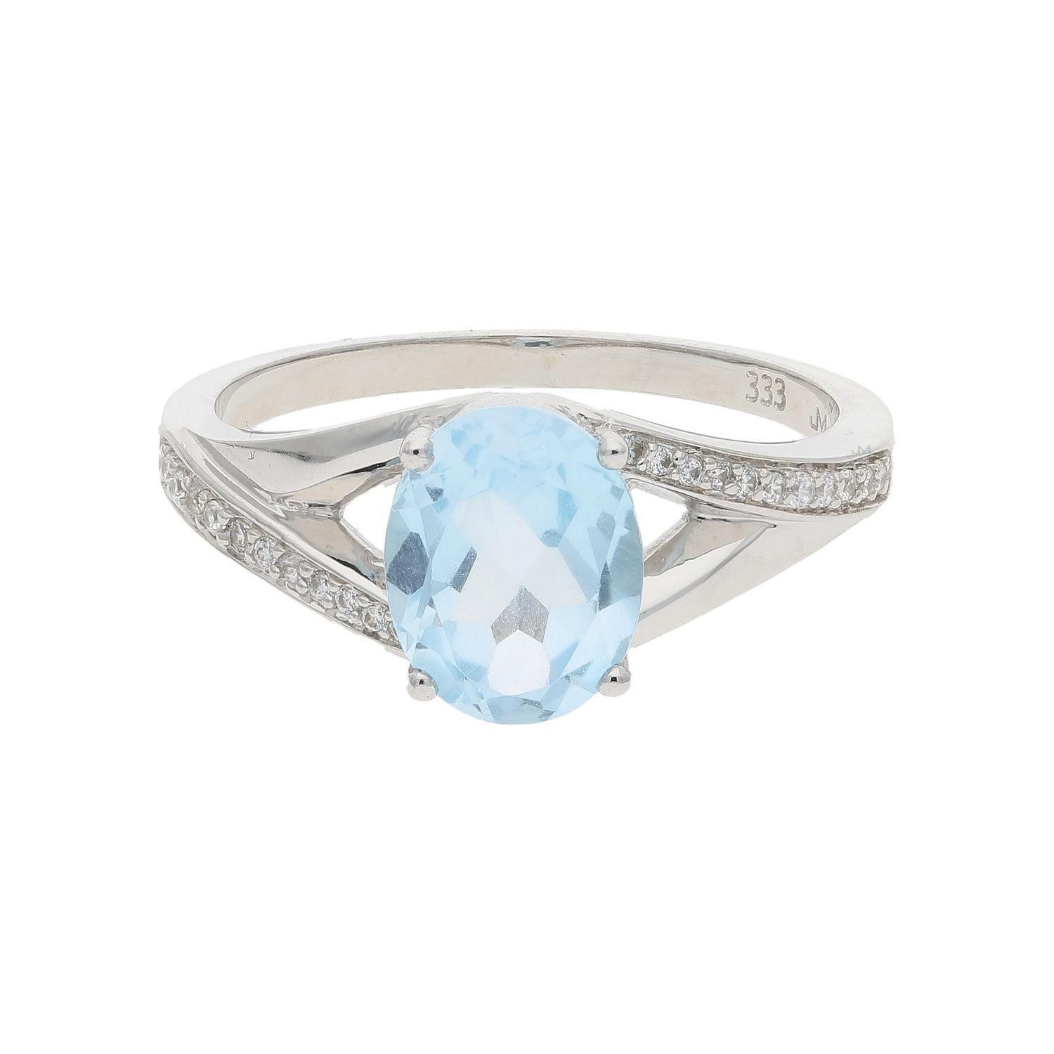 Dieser einzigartige JuwelmaLux Damenring überzeugt durch seinen Steinbesatz, welcher sich durch seine Farbe besonders gut hervorhebt. Das Schmuckstück wurde aus 333er 8 Karat Weißgold gefertigt und mittig mit einem strahlend hellblauen Blautopas bestückt, in die Ringschiene sind kleinere synthetische Zirkonia Steine eingefasst worden, welche das Design perfekt abrunden. sie können diesen schönen und eleganten ring im Alltag ohne Bedenken tragen.