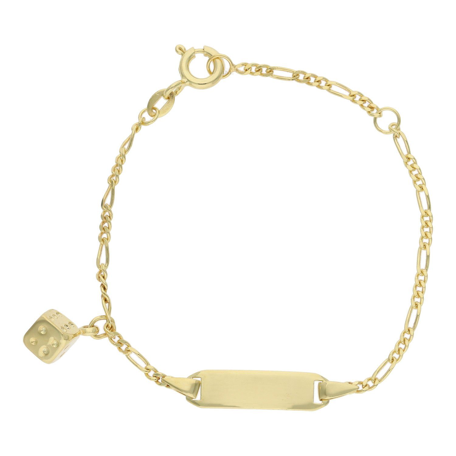 Zeitloses JuwelmaLux Identitäts-Armband in Gelbgold 333er 8 Karat für Neugeborene und Kleinkinder. Das Identitätsarmband besteht aus einer Figarokette mit Gravurplatte und einem kleinen Würfel. Verschlossen wird das Armband mit einem Federring. Durch eine zweite Öse kann das Armband in zwei verschiedenen Длинаn verschlossen werden. Все Ösen sind verlötet, für einen sicheren Halt. Das ideale Geschenk für Neugeborene und Kleinkinder.