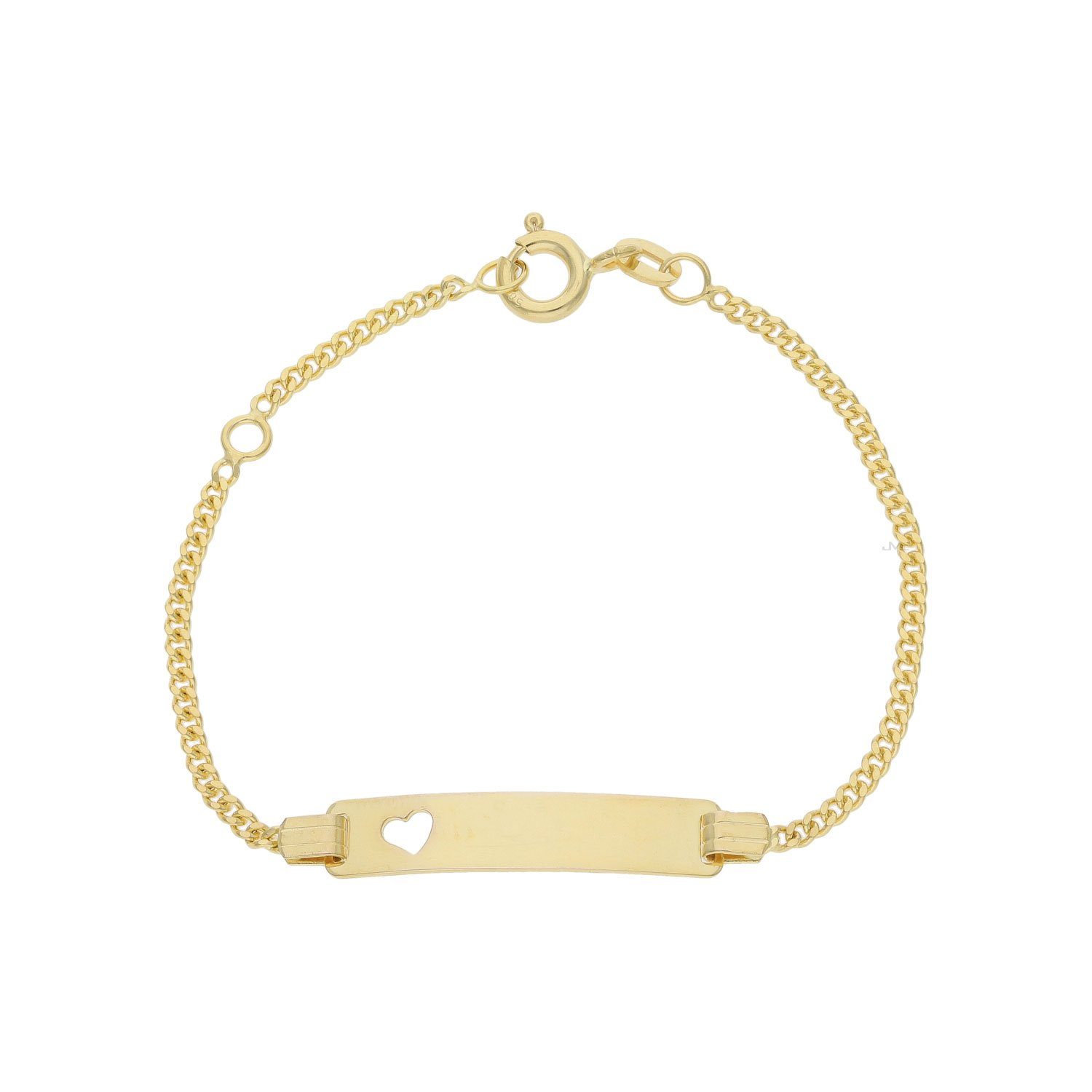 Dieses zeitlose JuwelmaLux Identitäts-Armband in Gelbgold 585er 14 Karat für Neugeborene und Kleinkinder. Das Identitätsarmband besteht aus einer Panzer Kette mit Gravurplatte, die ein eingestanztes Herz verziert. Verschlossen wird das Armband mit einem Federring. Durch eine zweite Öse kann das Armband in zwei verschiedenen Длинаn verschlossen werden. Все Ösen sind verlötet, für einen sicheren Halt. Das ideale Geschenk für Neugeborene und Kleinkinder zur Taufe oder die ersten Geburtstage. Sie können zum Beispiel den Namen des Kindes, ein besonderes Datum oder ähnliches, ohne weiteres bei uns auf Wunsch eingravieren lassen, um somit ein persönliches Erinnerungsstück zu schaffen.
