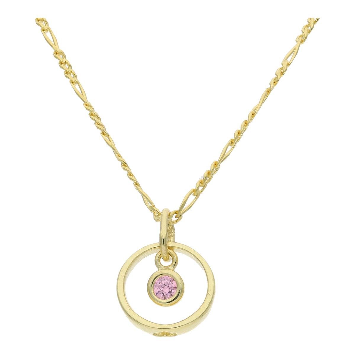 Der Taufring Anhänger ist aus 333er 8 Karat Gold gefertigt und hat eine polierte Oberfläche. Als Steinbesatz ist ein pinker synthetischer Zirkonia Stein eingefasst und in dem Taufring angebracht. Der Anhänger kann mit einer Gold Kette ohne Bedenken getragen werden.