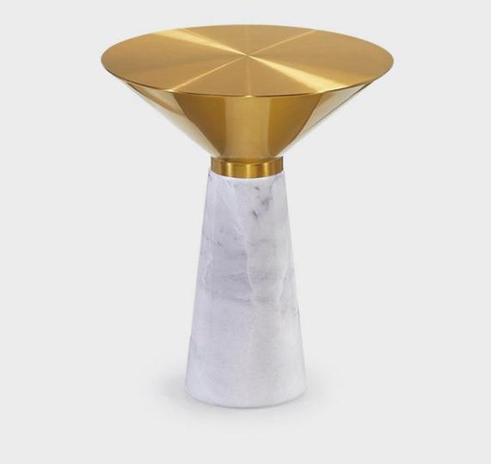Entdecken Sie den eleganten runden Marmor-Couchtisch in Gold, der Ihrem Wohnzimmer einen Hauch von Luxus verleiht. Mit seinem modernen Design und der harmonischen Kombination aus hochqualitativem Edelstahl und edelstem Marmor ist dieser Beistelltisch nicht nur ein Blickfang, sondern auch äußerst funktional. Die großzügigen Maße von 45 x 45 x 55 cm machen ihn ideal für jeden Raum – ob im Wohnzimmer, der Lounge oder im Foyer. Hergestellt in Europa, steht dieser Tisch für Qualität und Ästhetik. Der konisch zulaufende Tischfuß in elegantem Weiß setzt wunderschöne Akzente, während die edle goldene Oberfläche des Marmors eine besondere Note von Glamour und Stil hinzufügt. Verschönern Sie Ihre Einrichtung mit diesem multifunktionalen Tisch, der sowohl Platz für dekorative Elemente als auch für ein erfrischendes Getränk bietet. Bitte beachten Sie, dass die tatsächlichen Farben des Produkts von den Abbildungen abweichen können. Entscheiden Sie sich jetzt für diesen einzigartigen Marmor-Couchtisch, der Ihr Zuhause stilvoll bereichert.