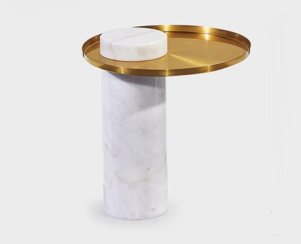 Entdecken Sie den eleganten weißen runden Beistelltisch, der Ihrem Wohnzimmer eine moderne Note verleiht. Dieses stilvolle Möbelstück überzeugt durch seine hochwertige Verarbeitung und die Verwendung edelster Materialien wie Marmor und Edelstahl, die in Europa gefertigt werden. Mit einem Durchmesser von 50 cm und einer Höhe von 50 cm passt dieser multifunktionale Tisch perfekt in Ihr Zuhause – egal ob im Lounge-Bereich, Flur oder Foyer. Die schlichte, aber elegante Farbgestaltung in Weiß und Gold sorgt dafür, dass er sich harmonisch in jede Einrichtung integriert. Der Tisch ist nicht nur ästhetisch ansprechend, sondern auch praktisch – ideal für Getränke, Bücher oder Dekoration. Sein rundes Design und die stabilen weißen Füße verleihen ihm einen zeitlosen Charme, der Erwachsene und Jugendliche gleichermaßen anspricht. Setzen Sie mit diesem Beistelltisch einen stilvollen Akzent und machen Sie Ihr Zuhause noch einladender. Holen Sie sich jetzt diesen Klassiker und verwandeln Sie Ihre Wohnräume in eine Oase der Eleganz!