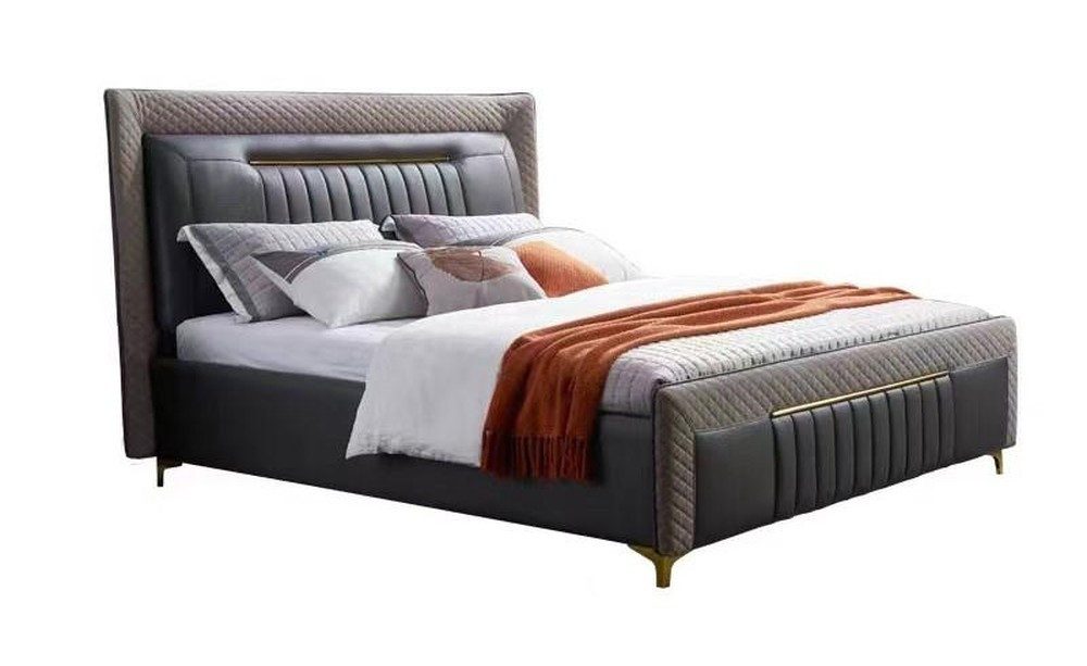 Erleben Sie unvergleichlichen Stil und Komfort mit unserem luxuriösen Hotelbett aus modernem Leder für Doppelzimmer. Dieses exquisite Bett vereint elegantes Design und hochwertige Materialien, um eine entspannende Oase in Ihrem Schlafzimmer zu schaffen. Gefertigt in Europa, besteht das Bettgestell aus robustem Holz und ist mit feinstem Kunstleder bezogen, das in einem ansprechenden Braun-Grauton gehalten ist – eine zeitlose Kombination, die in jedes moderne Wohnambiente passt. Die großzügigen Maße von 218 x 222 cm sorgen für ausreichend Platz und die komfortable Liegefläche von 180 x 200 cm ermöglicht erholsame Nächte für zwei Personen. Abgerundet wird das edle Design durch glänzende Edelstahlfüße in elegantem Gold, die dem Bett eine besondere Note verleihen. Bitte beachten Sie, dass das Bett ohne Matratze geliefert wird und die Farben auf verschiedenen Monitoren variieren können. Perfekt für Erwachsene und Jugendliche, bringt dieses Bett nicht nur Funktionalität, sondern auch einen Hauch von Luxus in Ihr Zuhause. Werten Sie Ihr Schlafzimmer auf – entscheiden Sie sich für ein Bett, das Ihren Wohnstil unterstreicht.