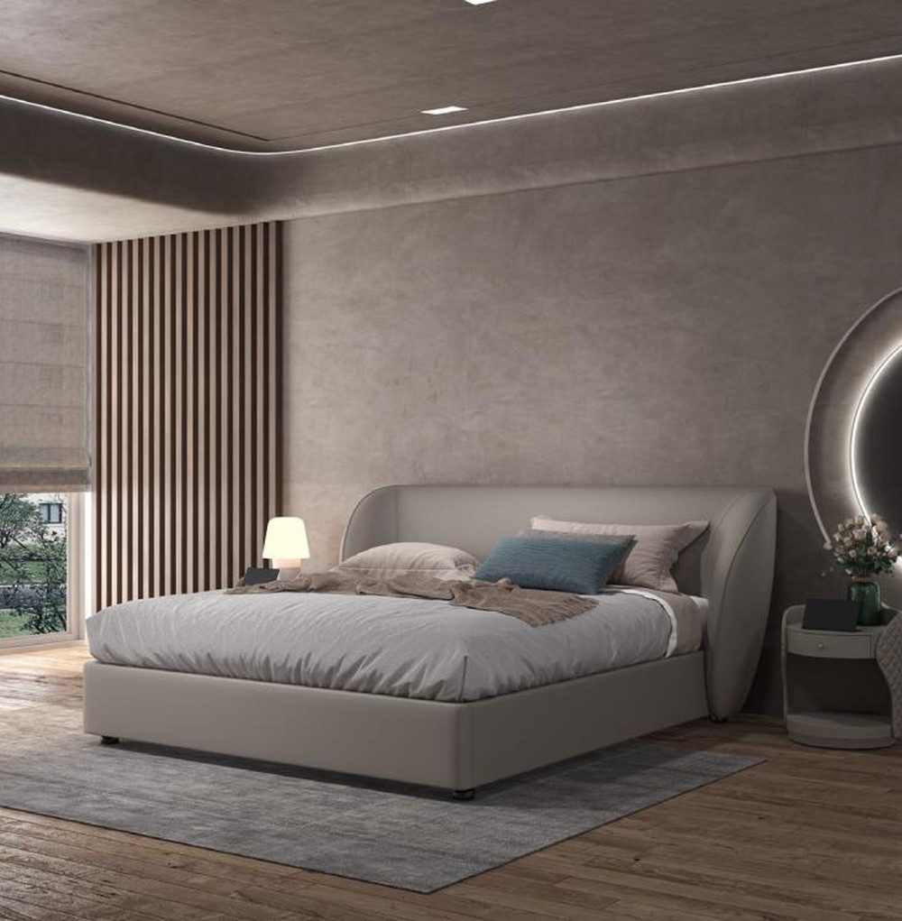 Das moderne Doppelbett aus Holz in Grau ist die perfekte Wahl für Ihr Designer Schlafzimmer. Mit seiner zeitgemäßen Ästhetik und präzisen Handwerkskunst bringt dieses Bett Eleganz und Stil in jeden Raum. Hergestellt in Europa und aus hochwertigen Materialien wie Holz und Kunstleder gefertigt, vereint es Funktionalität mit einem ansprechenden Design. Die großzügigen Maße von ca. 226 x 232 x 110 cm und einer Liegefläche von ca. 180 x 200 cm bieten ausreichend Platz für erholsame Nächte. Das schlichte, graue Finish passt zu verschiedensten Einrichtungsstilen und schafft eine harmonische Atmosphäre. Bitte beachten Sie, dass das Bett ohne Matratze geliefert wird. Ob für Erwachsene oder Jugendliche, dieses Schlafmöbel ist die ideale Grundlage für einen gesunden Schlaf und gemütliche Nächte. Setzen Sie auf Qualität und Stil – entscheiden Sie sich für unser modernes Doppelbett. Verleihen Sie Ihrem Schlafzimmer das Upgrade, das es verdient, und genießen Sie jede Nacht in diesem traumhaften Bett.