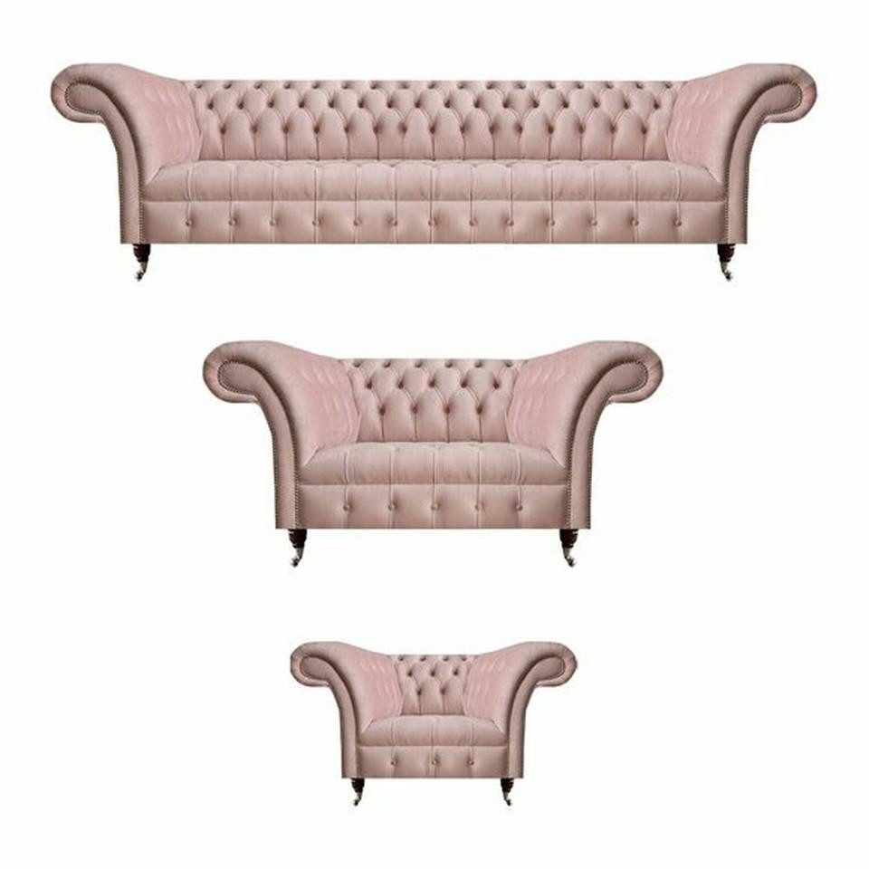 JVmoebel Chesterfield-Sofa Komplette Rosa Chesterfield Sitzgarnitur Polster Viersitzer Textil, Made in Europa