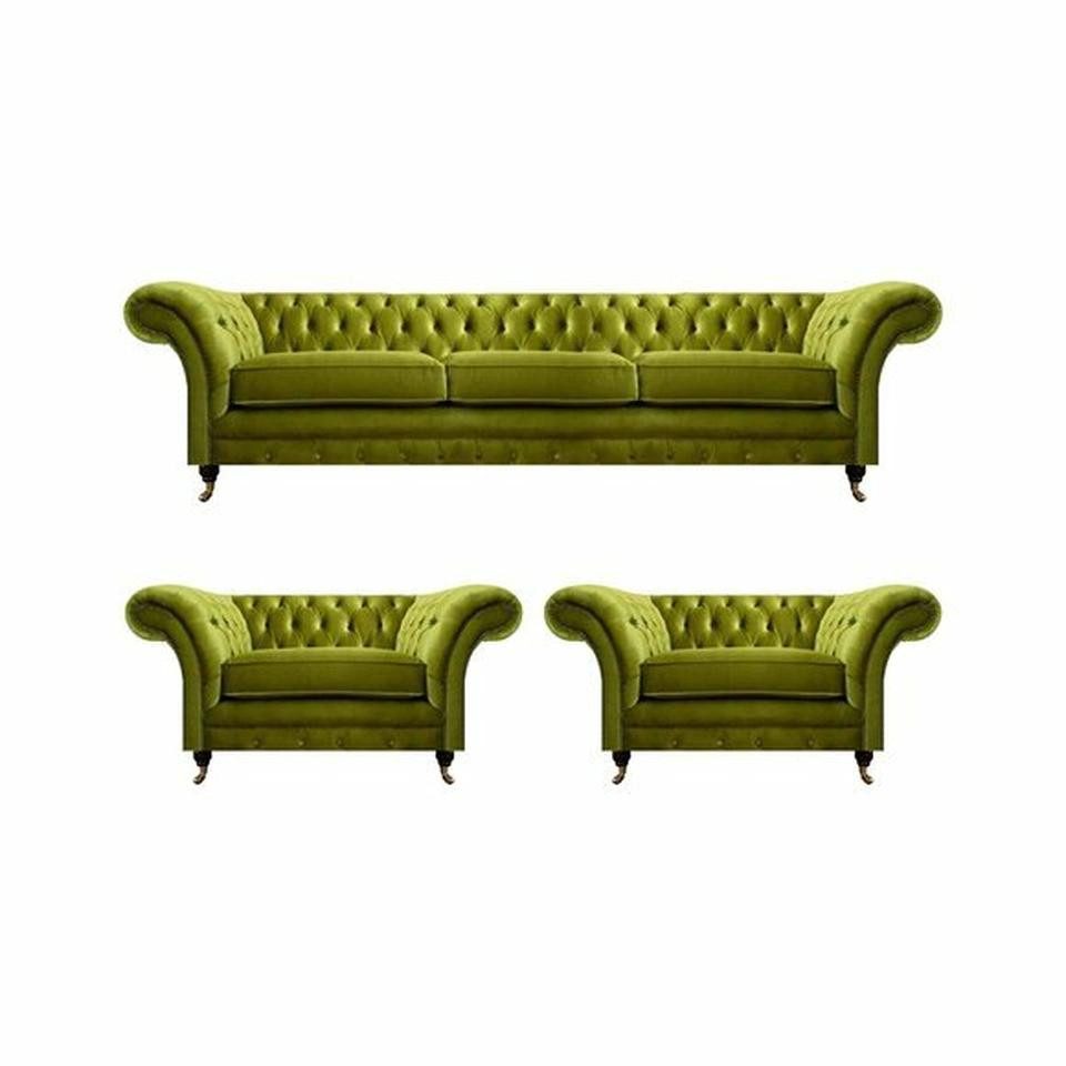 JVmoebel Chesterfield-Sofa Olivengrüne Wohnzimmer Garnitur Chesterfield Polstercouch 2x Sessel, Made in Europa