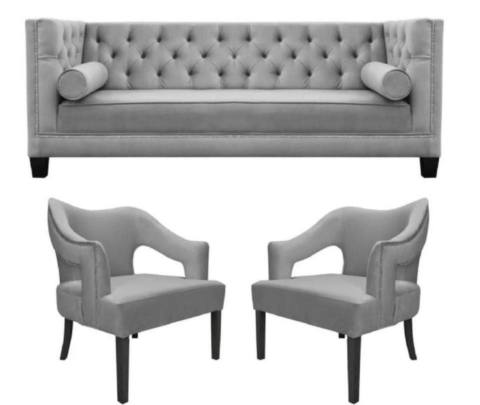 Chesterfield-Sofa Silber Samt Chesterfield Sofagarnitur 3tlg. Grau Sitz Polsterung