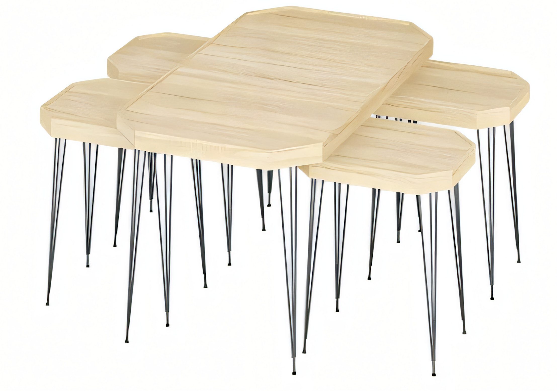 JVmoebel Couchtisch Beige Holz Couchtisch mit Beistelltischen Modern Elegant Set (MaßeCouchtisch, Maße4x Beistelltische), Made in Europe