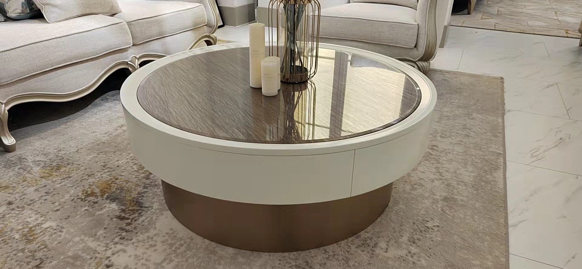 Erleben Sie mit unserem runden Couchtisch im goldenen Look eine harmonische Symbiose aus modernem Design und hochwertiger Verarbeitung. Dieser exquisite Tisch ist nicht nur ein funktionales Möbelstück, sondern auch ein stilvolles Highlight in Ihrem Wohnzimmer. Hergestellt in Europa, vereint er die natürlichen Eigenschaften von Holz mit eleganten Metallakzenten, die ihm eine luxuriöse Ausstrahlung verleihen. Mit einem Durchmesser von 105 cm und einer Höhe von 43 cm bietet dieser Couchtisch ausreichend Platz für Getränke, Snacks und Dekoration. Die zeitlos schöne weiße Oberfläche und die goldenen Tischfüße setzen markante Akzente und fügen sich nahtlos in jedes moderne Wohnkonzept ein. Gut zu wissen: Dank seiner pflegeleichten Oberfläche lässt sich der Tisch spielend leicht mit einem feuchten Tuch reinigen. Ideal für Erwachsene und Jugendliche, erfüllt dieser Couchtisch die Ansprüche von Stilbewussten und ist das perfekte Möbel für Ihre entspannenden Stunden. Holen Sie sich diese stilvolle Ergänzung in Ihr Zuhause und genießen Sie modernes Wohnen in seiner besten Form.