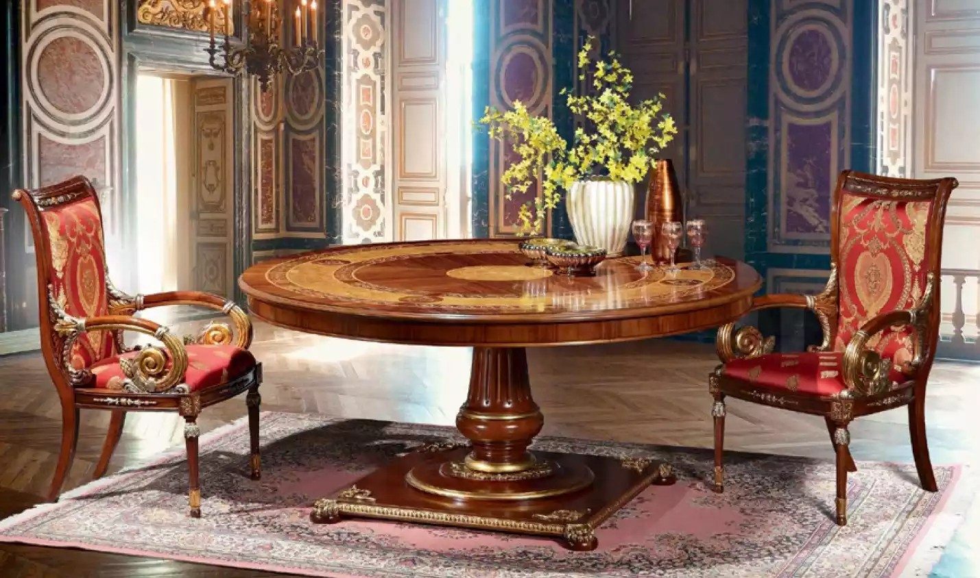 Entdecken Sie den italienischen Designer Esstisch Rund in Braun – ein zeitloses Meisterwerk, das jeden Essbereich in eine stilvolle Oase verwandelt. Mit einem Durchmesser von 200 cm und einer Höhe von 78 cm bietet dieser raffinierte Tisch ausreichend Platz für gesellige Abendessen, kreative Kochabende und entspannte Kaffeerunden. Die moderne Art Deco-Ästhetik kombiniert mit robustem Holz verleiht dem Tisch nicht nur eine ansprechende Optik, sondern auch Langlebigkeit und Stabilität. Durch die sorgfältige Verarbeitung in Europa stehen wir für Qualität und Design auf höchstem Niveau. Sein elegantes Braun strahlt Wärme und Gemütlichkeit aus, während die schlichten, modernen Füße für eine harmonische Gesamterscheinung sorgen. Ideal für Esszimmer, Wohnzimmer, Küchen oder Arbeitszimmer – dieser Tisch fügt sich nahtlos in jeden Wohnstil ein. Pflegeleicht und langlebig – einfach mit einem feuchten Tuch reinigen. Bereiten Sie sich darauf vor, unvergessliche Momente mit Freunden und Familie an diesem exquisiten Esstisch zu erleben. Greifen Sie zu und setzen Sie auf italienisches Design!