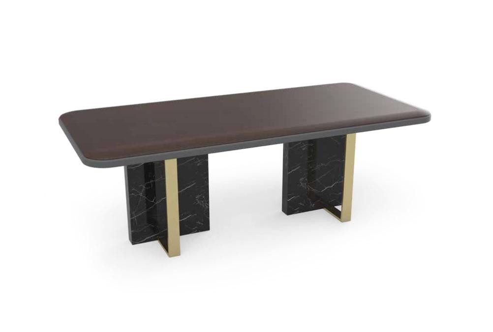 Entdecken Sie unseren luxuriösen Esstisch, der Luxus und modernes Design in Ihr Esszimmer oder Wohnzimmer bringt. Mit einer großzügigen Breite von 215 cm, Tiefe von 100 cm und einer Höhe von 76 cm bietet dieser Tisch ausreichend Platz für gesellige Zusammenkünfte und unvergessliche Dinnerpartys. Hergestellt in Europa, vereint dieses Möbelstück hochwertige Materialien wie Marmorimitation, Edelstahl und Massivholz, um besten Komfort und Langlebigkeit zu gewährleisten. Der elegante, rechteckige Tisch besticht durch seine bunte Farbgebung und die goldenen Tischbeine, die einen Hauch von Glamour verleihen und sich perfekt in moderne Wohnstile einfügen. Durch die sorgfältige Verarbeitung und das zeitgenössische Design wird dieser Esstisch schnell zum Highlight Ihres Raumes. Möbel sind nicht nur funktional, sondern auch ein Ausdruck Ihres Stils. Setzen Sie mit unserem Esstisch ein Statement und genießen Sie die Kombination aus zeitloser Eleganz und modernem Flair. Montagehinweise und -material sind inklusive, damit Sie schnell und unkompliziert Ihr neues Möbelstück einsetzen können. Holen Sie sich jetzt den Esstisch, der Ihr Zuhause bereichert!