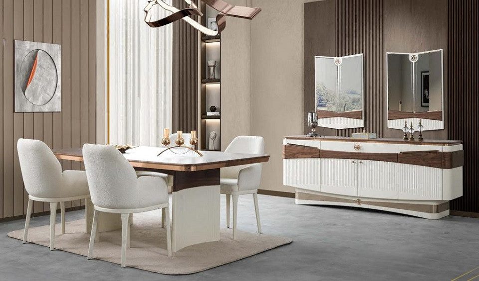 Serie | 8tlg. Esszimmer Set (Esstisch + 4x Stühle + Sideboard + 2x Spiegele) |