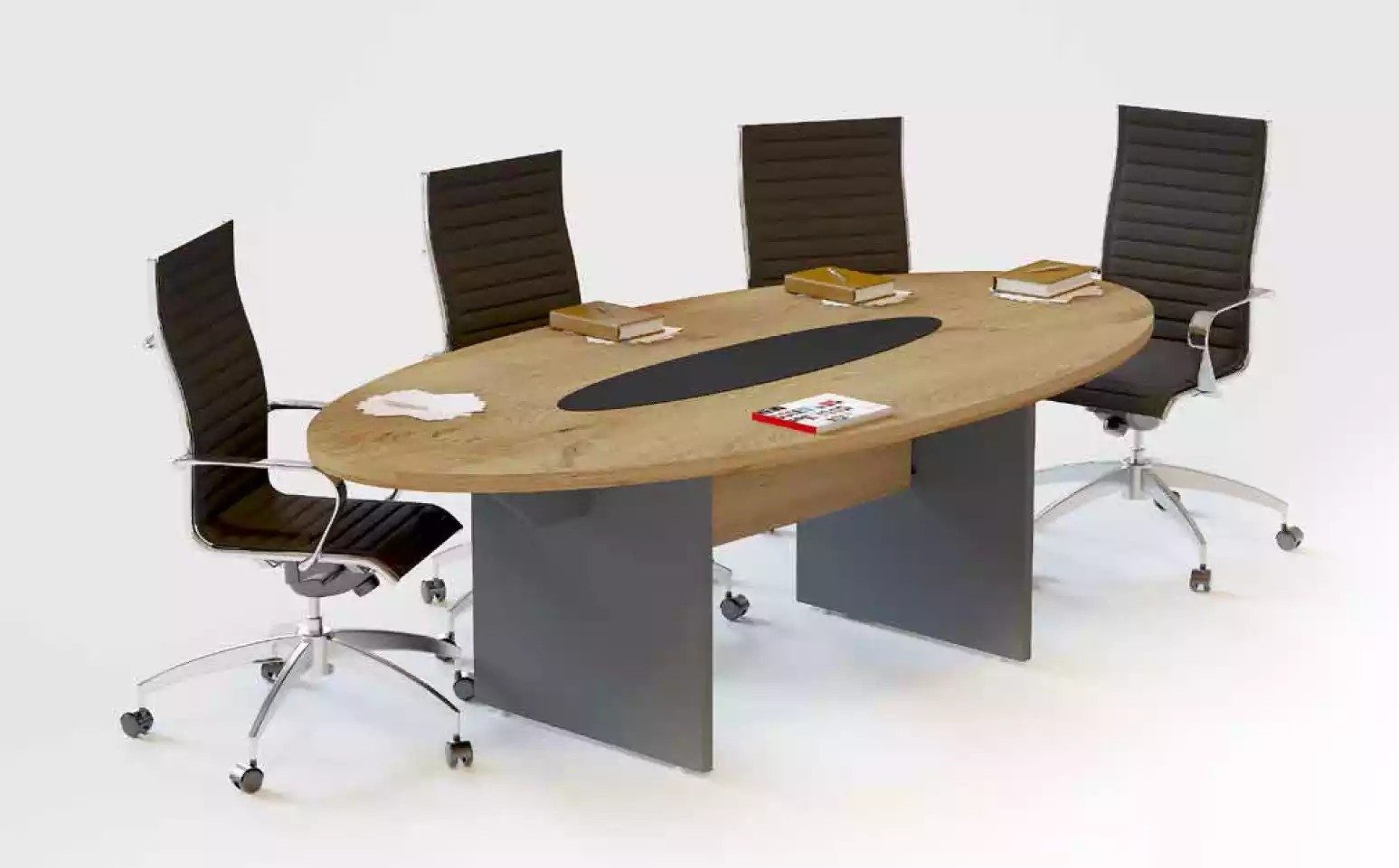 Entdecken Sie den eleganten Konferenztisch, der Ihre Meetings und Büros revolutioniert. Mit seinen großzügigen Maßen von 220 x 120 x 75 cm bietet dieser Tisch den perfekten Raum für kreatives Arbeiten und produktive Besprechungen. Hergestellt in Europa aus hochwertigem Holz, vereint das Design moderne Ästhetik mit erstklassiger Funktionalität. Die natürliche Holzfarbe kombiniert mit grauen Elementen verleiht jedem Raum einen stilvollen Touch. Dank der multifunktionalen Nutzungsmöglichkeiten eignet sich der Tisch ideal für sowohl informelle Meetings als auch formelle Präsentationen. Die ovale Form sorgt für eine ansprechende Raumatmosphäre und fördert den kreativen Austausch. Montagematerial ist im Lieferumfang enthalten, sodass der Aufbau schnell und problemlos gelingt. Dieser Konferenztisch ist nicht nur robust und langlebig, sondern auch ein echter Hingucker in jedem Arbeitszimmer. Setzen Sie auf Qualität und Design – wählen Sie unseren eleganten Konferenztisch für professionelle Umgebungen, die inspirieren.
