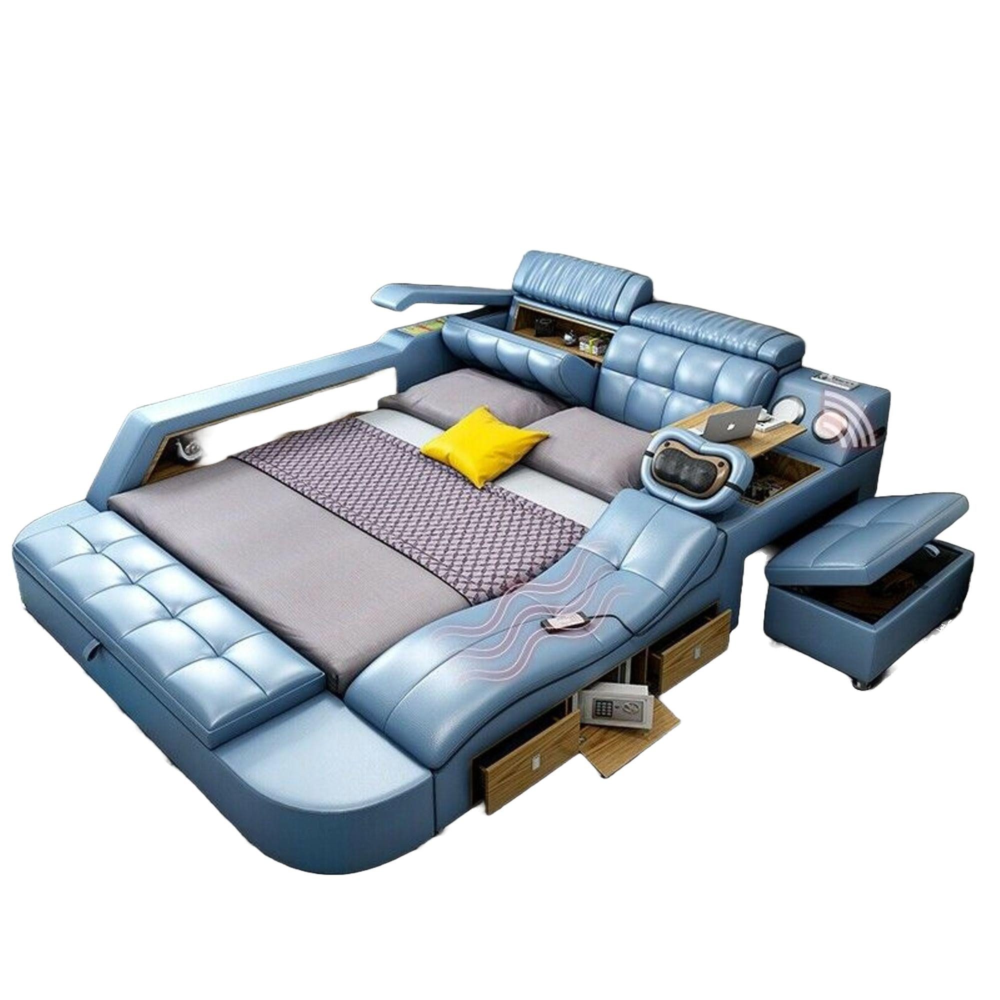 Ausstattung | Schubladenfächer Hocker zum einschieben Relax Liege mit Massagefunktion ( mit Fernbedienung) Verstellbare Kopfstützen Verstellbarer Tisch USB Anschluss Bluetooth für Kontakt mit Handy Soundboxen mit Bluetooth verbindbar Tresor mit Schlüssel und Pin Verfahren |