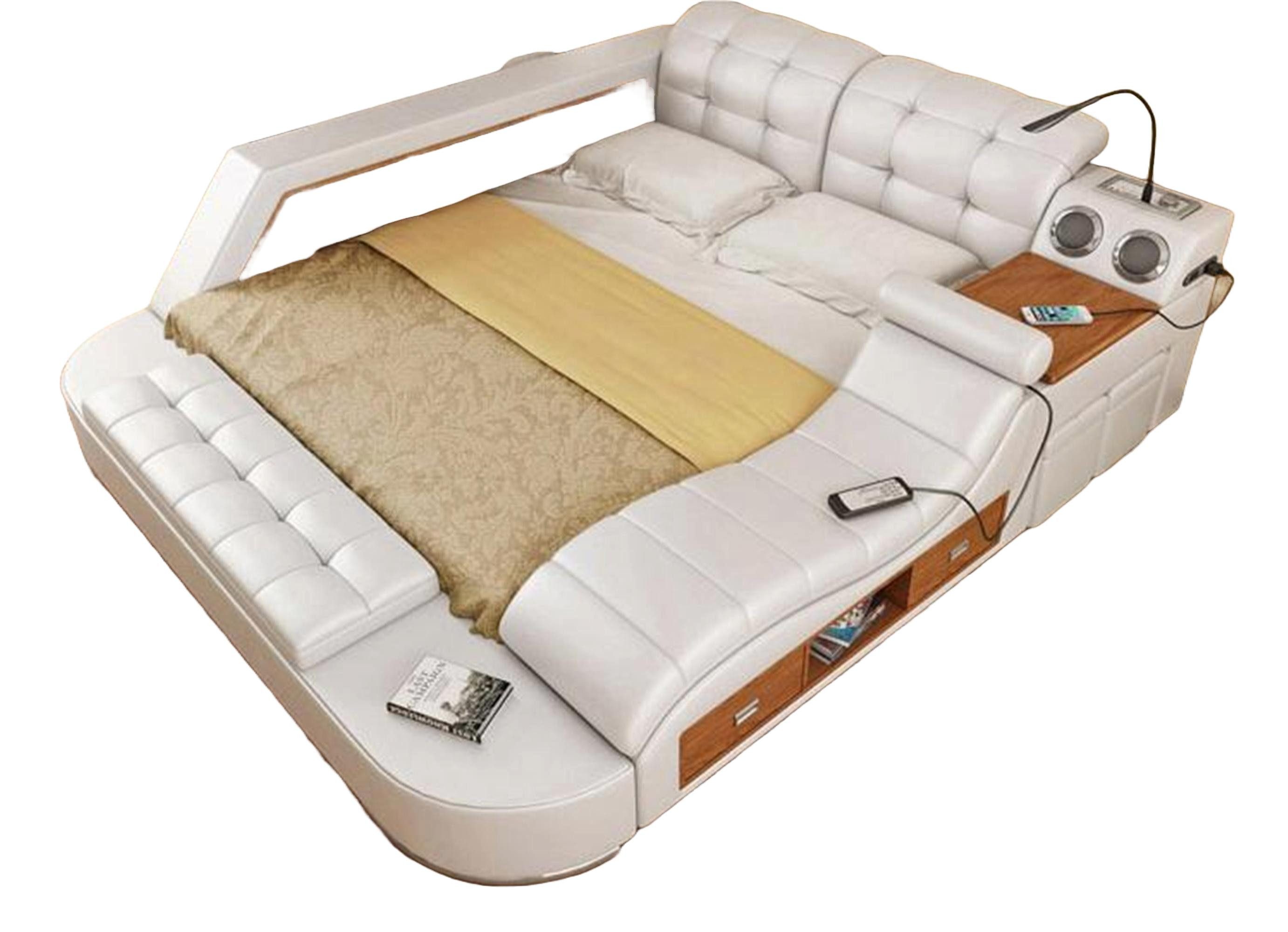 Ausstattung | Schubladenfächer Hocker zum einschieben Relax Liege mit Massagefunktion ( mit Fernbedienung) Verstellbare Kopfstützen Verstellbarer Tisch USB Anschluss Bluetooth für Kontakt mit Handy Soundboxen mit Bluetooth verbindbar Tresor mit Schlüssel und Pin Verfahren Nachtlampe |