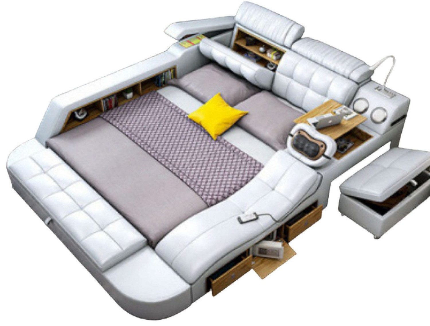 Ausstattung | Schubladenfächer Hocker zum einschieben Relax Liege mit Massagefunktion ( mit Fernbedienung) Verstellbare Kopfstützen Verstellbarer Tisch USB Anschluss Bluetooth für Kontakt mit Handy Soundboxen mit Bluetooth verbindbar Tresor mit Schlüssel und Pin Verfahren Nachtlampe |
