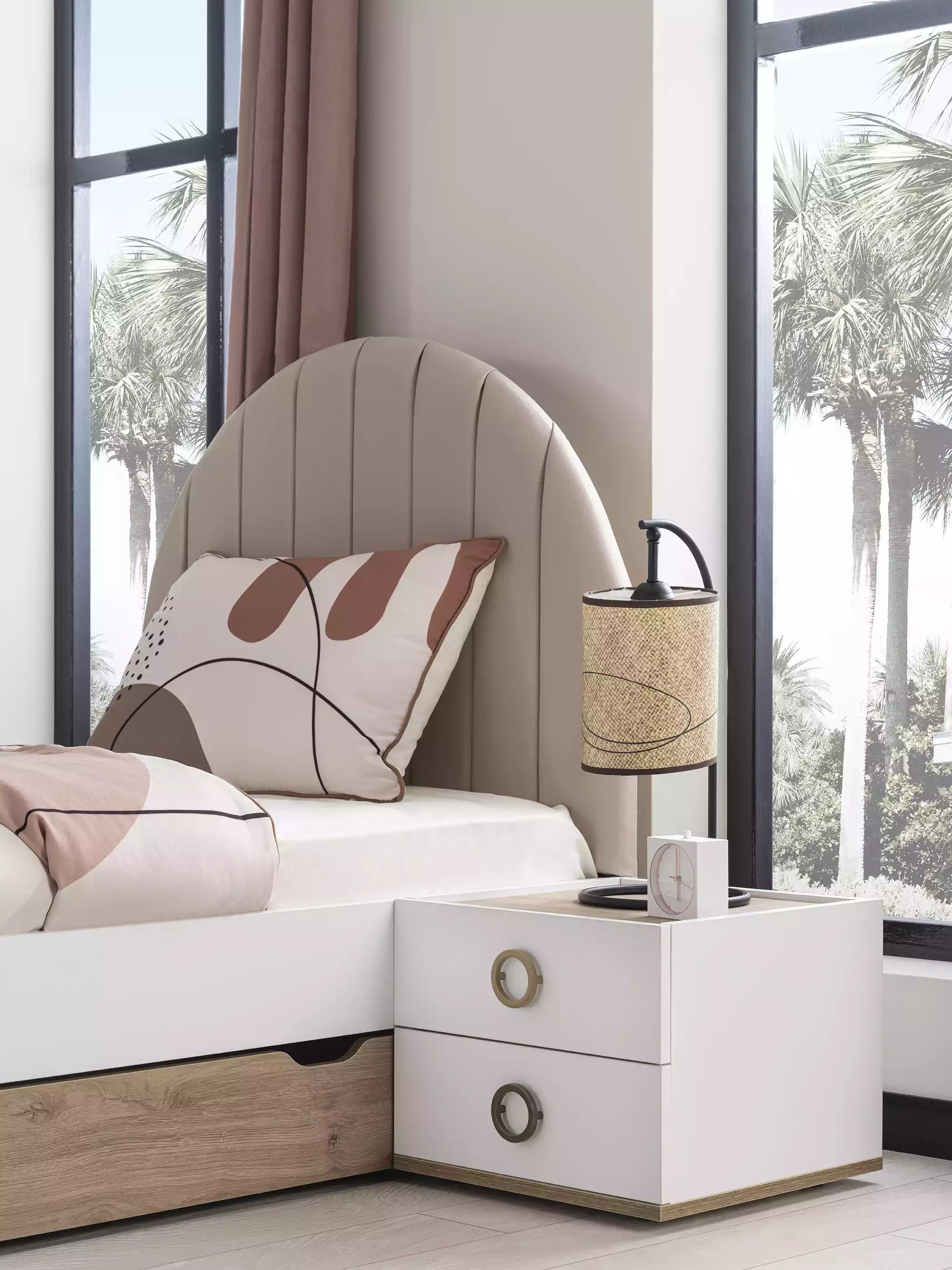 Präsentieren Sie das perfekte Möbelstück für das Kinderzimmer: Unsere moderne Holz-Nachtkonsole in strahlendem Weiß vereint Funktionalität und stilvolles Design auf harmonische Weise. Mit zwei praktischen Schubladen bietet sie ausreichend Stauraum für Bücher, Spielzeug und andere Schätze, die das Kinderherz begehrt. Das schlicht-elegante Design fügt sich mühelos in jeden Wohnstil ein und schafft eine angenehme Atmosphäre im Raum. Hergestellt in Europa, steht diese hochwertige Nachtkonsole für Эко-товары und Langlebigkeit. Die Maße von 46 x 45 x 38 cm machen sie zur idealen Ergänzung für jedes Bett, während die Pflegeleichtigkeit durch einfaches Reinigen mit einem feuchten Tuch überzeugt. Das neutrale Farbkonzept in Weiß spricht sowohl Erwachsene als auch Jugendliche an und passt wunderbar in jedes Kinderzimmer. Setzen Sie auf Qualität und modernes Design – unsere Nachtkonsole ist die perfekte Wahl für Ihre kleinen Lieblinge. Ein Möbelstück, das mit Liebe zum Detail gefertigt wurde und sich charmant ins Zuhause integriert!