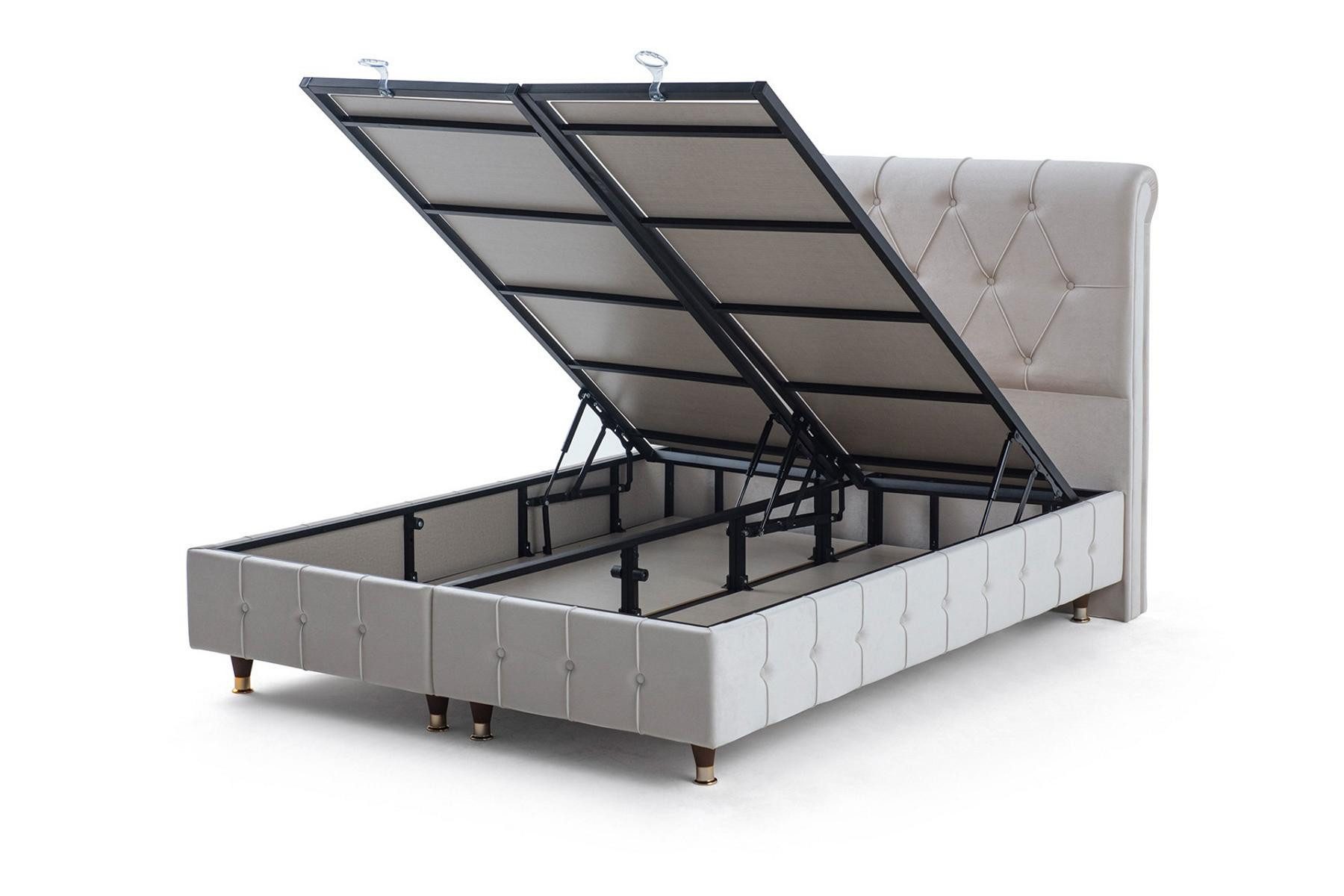 Entdecken Sie das elegante weiße Bettgestell im klassischen Chesterfield-Stil, ein zweifellos zeitloses Möbelstück, das Ihr Schlafzimmer in eine stilvolle Oase verwandelt. Mit großzügigen Abmessungen von ca. 200 x 202 x 140 cm bietet dieses Bett nicht nur eine komfortable Liegefläche von ca. 200 x 200 cm, sondern auch einen majestätischen Auftritt, der glänzende Akzente setzt. Hergestellt aus hochwertigem Holz und feinen Textilien, strahlt das Bett eine moderne Eleganz aus, die jeden Raum luxuriös aufwertet. Der integrierte Bettkasten sorgt zudem für praktischen Stauraum, ideal für Ihre persönlichen Gegenstände. Setzen Sie auf Qualität "Made in Europa" und genießen Sie das harmonische Zusammenspiel aus Funktionalität und Stil. Perfekt für Erwachsene und Jugendliche, fügt sich dieses Bett harmonisch in jedes moderne Schlafzimmer ein. Gönnen Sie sich und Ihrem Raum den Luxus und die Raffinesse, die Sie verdienen, und erleben Sie erholsame Nächte in diesem exquisite Chesterfield-Bett.