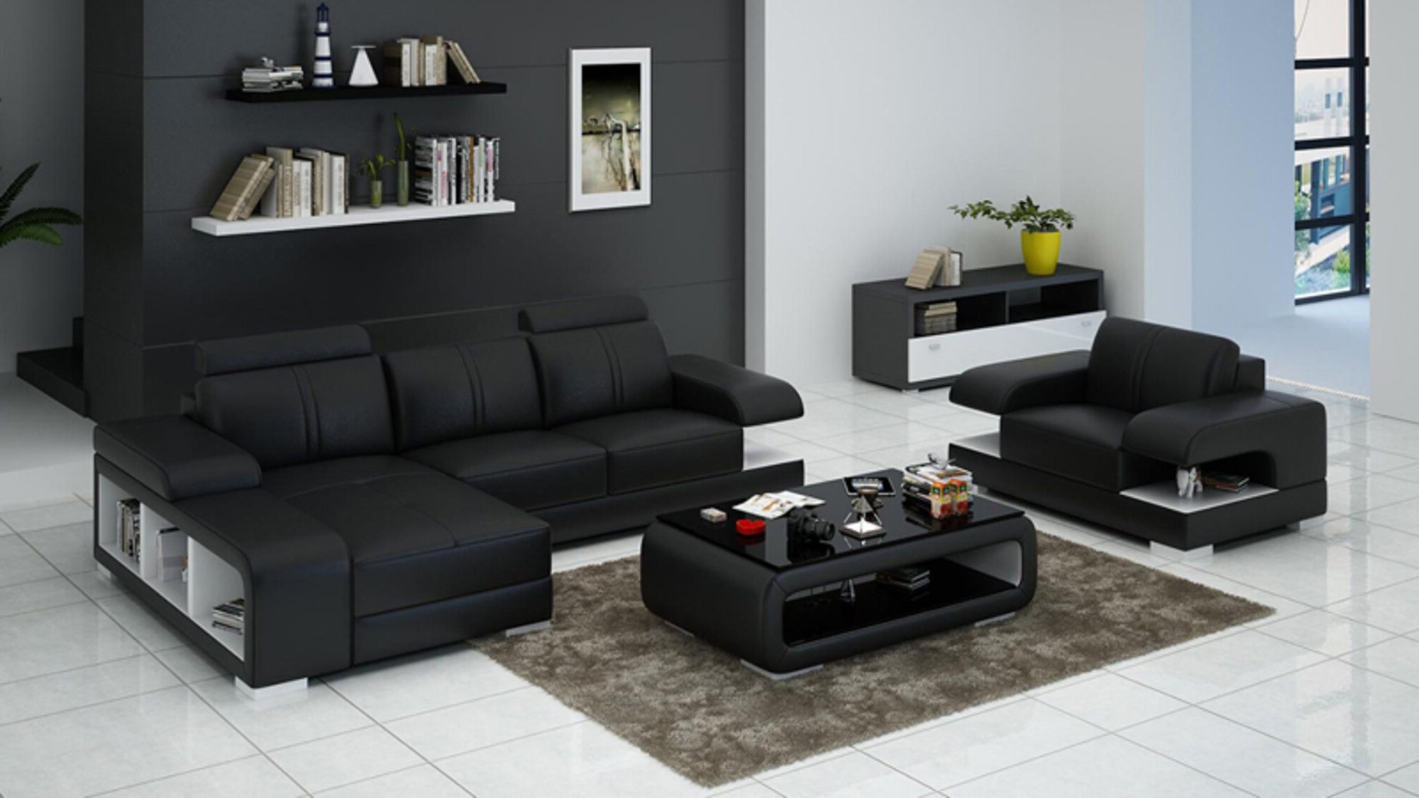 JVmoebel Polstergarnitur Ledersofa Couch Wohnlandschaft Ecksofa Sessel Garnitur Modern Sofa Neu, (Sofa + SESSEL G8028E), Made in Europa
