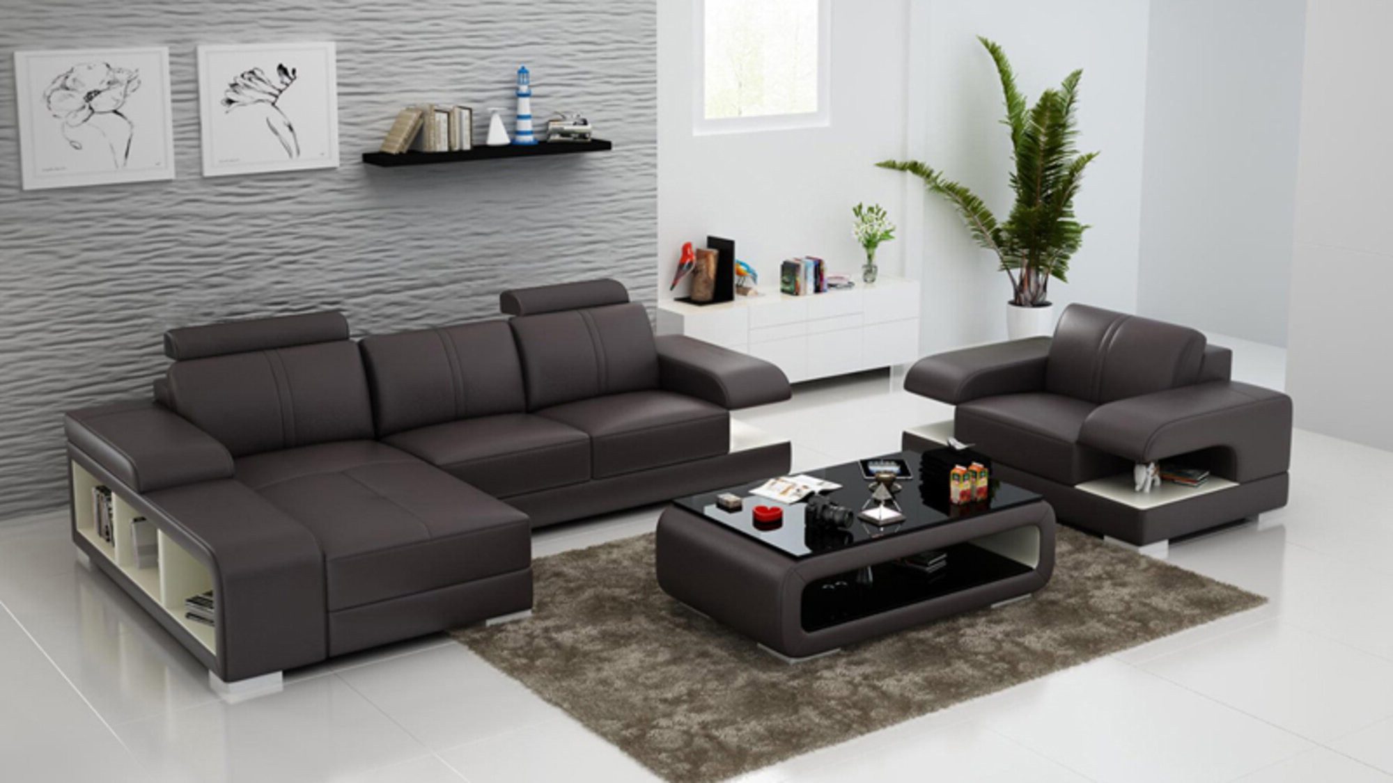 Diese moderne Ledersofa Couch Wohnlandschaft Ecksofa Sessel Garnitur G8028E ist die ideale Ergänzung für jedes Wohnzimmer. Mit ihrem zeitlosen Design und hochwertigen Materialien bietet sie nicht nur Komfort, sondern auch Stil. Das Ecksofa und der Sessel bieten genügend Platz zum Entspannen und gemütlichen Beisammensein. Die Neuheit dieses Sofas bringt Frische in jeden Raum und lädt zum Verweilen ein.