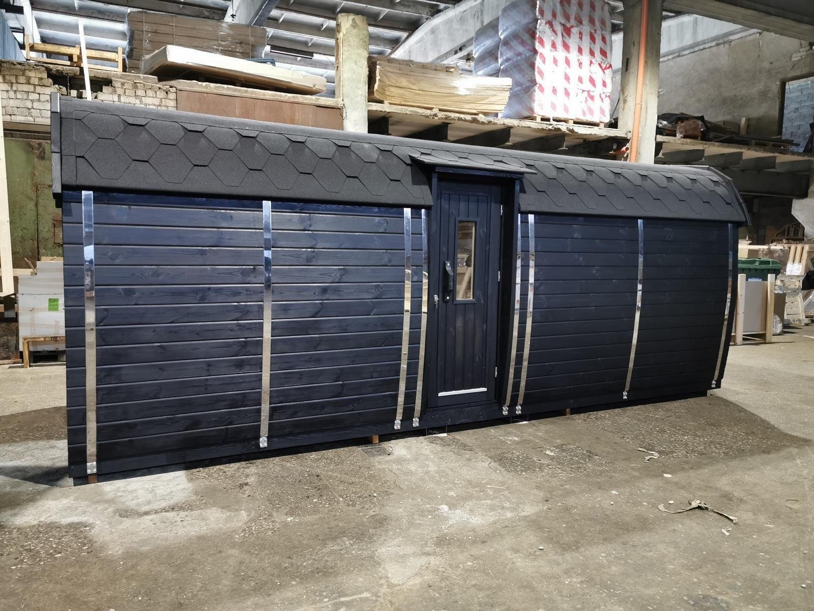 Saunahaus Holzsauna Kiefernholz Außensauna Panorama 590x230x260 cm 46 mm