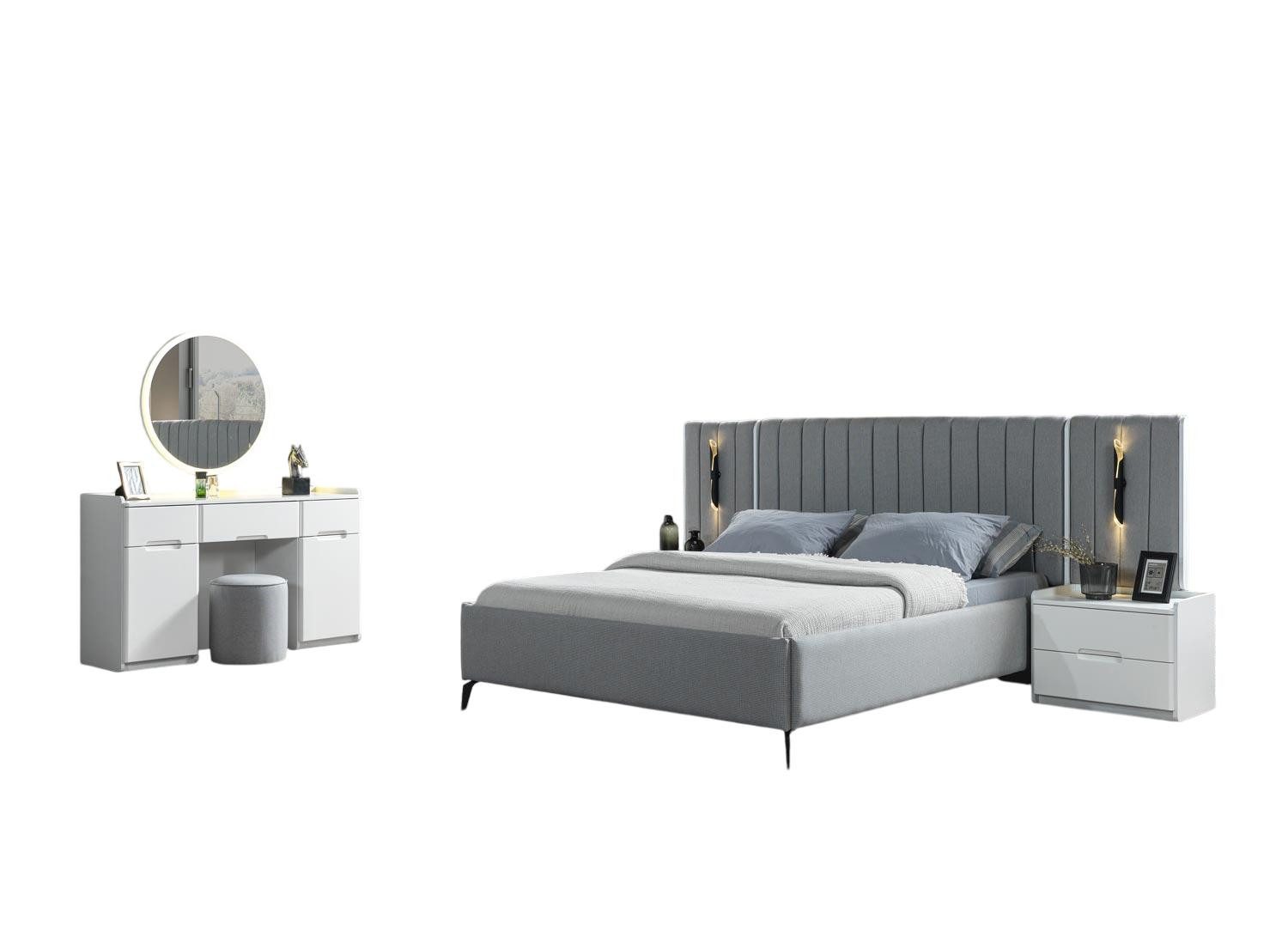 Serie | Bett, 2x Nachttische, Schminktisch, Spiegel |