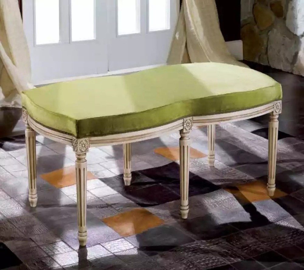 Entdecken Sie die grüne Designer Sitzbank – eine perfekte Kombination aus Stil und Funktionalität für Ihr Zuhause. Diese elegante Polsterbank, gefertigt in Europa, verbindet klassisches Design mit zeitgemäßer Ästhetik und ist die ideale Ergänzung für Ihr Wohnzimmer oder Schlafzimmer. Mit den Maßen von 103 x 58 x 51 cm bietet sie bequem Platz für zwei Personen und setzt dabei stilvolle Akzente. Das hochwertige Material aus Holz und Textil sorgt nicht nur für eine ansprechende Optik, sondern auch für außergewöhnlichen Komfort. Die sanfte grüne Farbgebung harmoniert wunderbar mit weißen Füßen und vermittelt ein Gefühl von Frische und Eleganz. Die Sitzbank ist nicht nur ein funktionales Möbelstück, sondern auch ein Ausdruck Ihres persönlichen Stils. Ob als zusätzliche Sitzgelegenheit oder als dekoratives Element, sie fügt sich nahtlos in jeden klassischen Wohnstil ein und ist sowohl für Erwachsene als auch für Jugendliche geeignet. Investieren Sie in Qualität und machen Sie Ihr Zuhause mit dieser einzigartigen Polsterbank zu einem Ort der Inspiration und Gemütlichkeit.