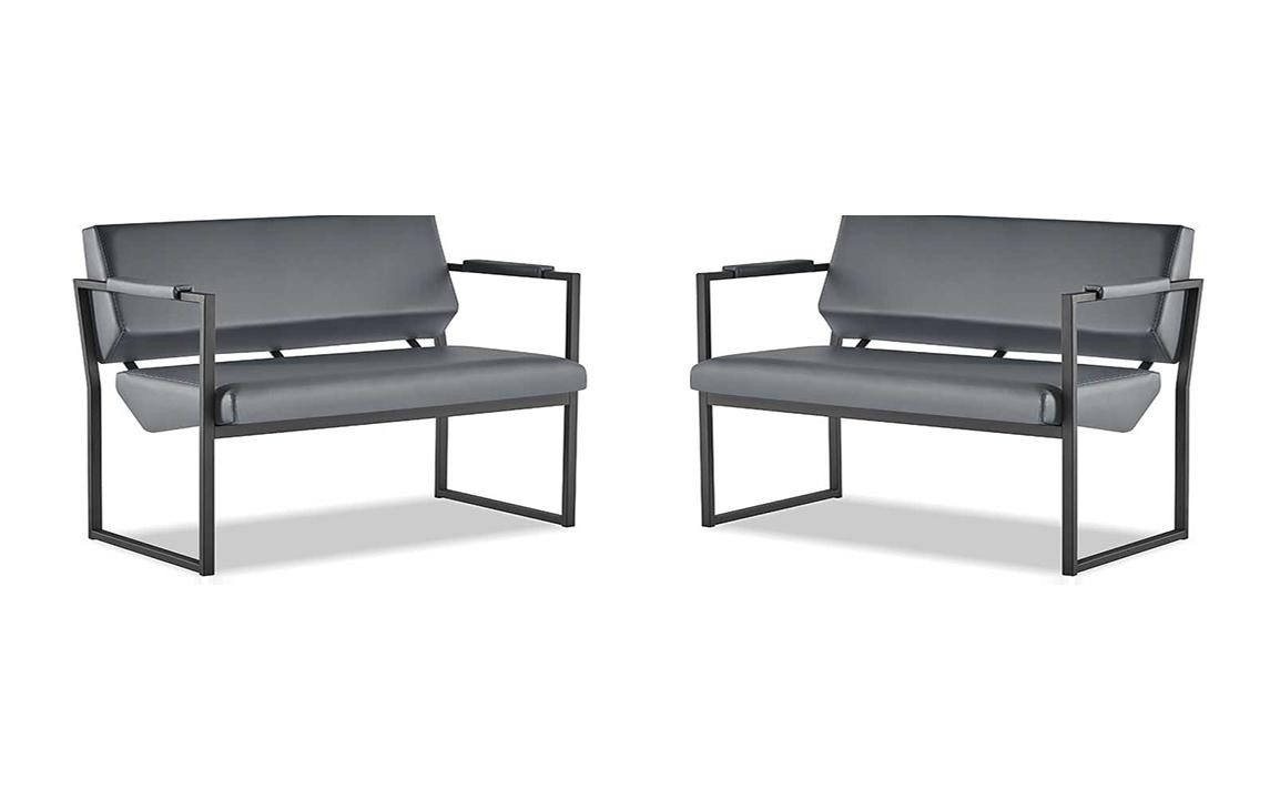 Sitzbank Moderner Ledersofas Schwarz Sofa-Set 2-Sitzer Leder Edelstahl Couch