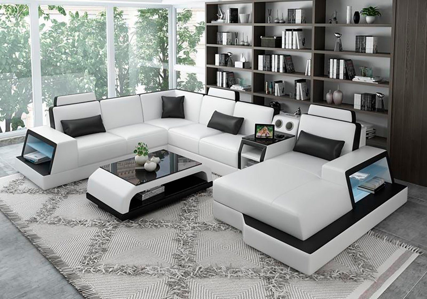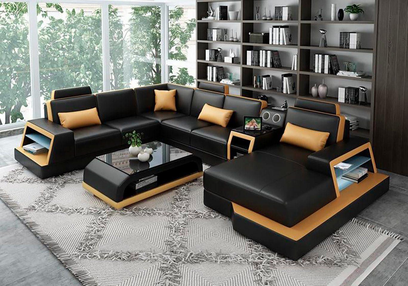 Modellbezeichnung | Eck Sofa Couch Polster Eck Wohnlandschaft Bluetooth Boxen Beleuchtet |