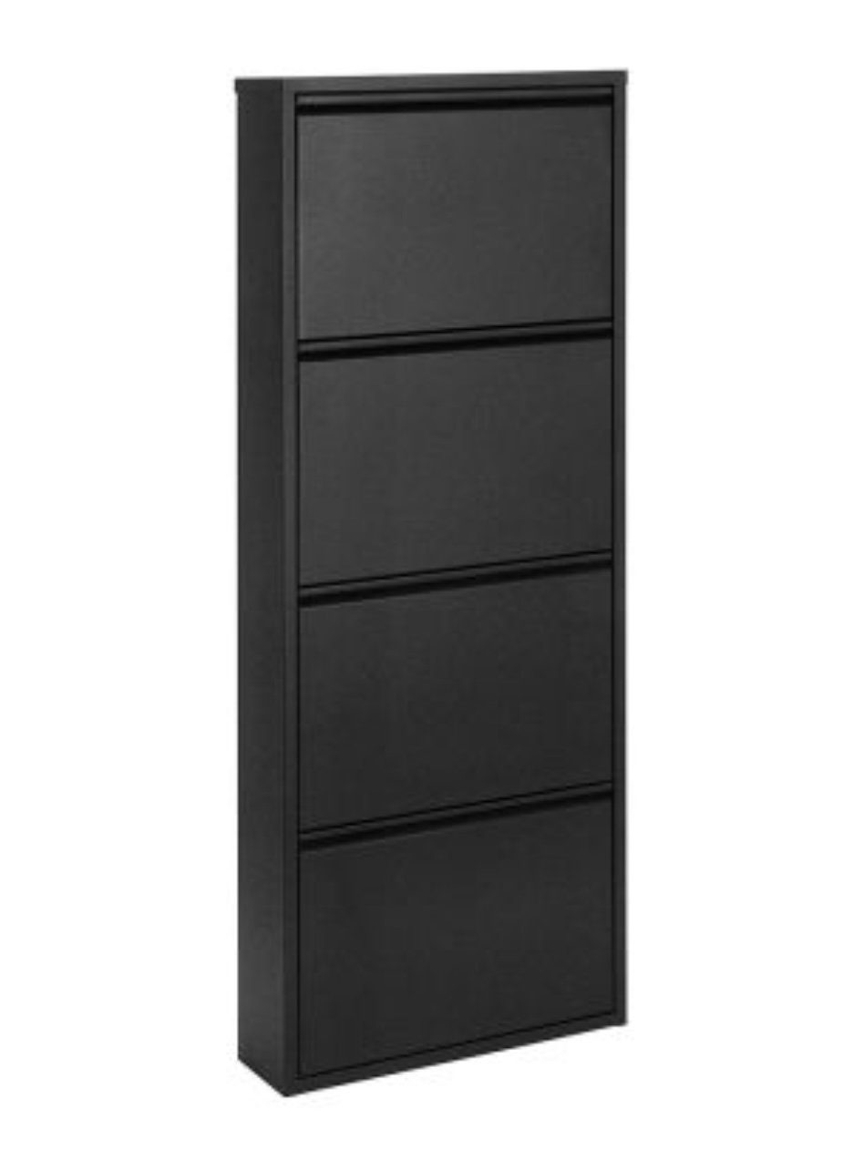 Hergestellt aus hochwertigem, pulverbeschichtetem Stahl in elegantem Schwarz, bietet diese Schuhregal nicht nur eine robuste und langlebige Konstruktion, sondern auch ein zeitloses Design, das sich nahtlos in jede Wohnkultur einfügt. Die vier Fächer bieten ausreichend Platz für bis zu 12 Paar Schuhe, wodurch der Boden frei von Unordnung bleibt und Ihre Schuhe optimal geschützt sind.